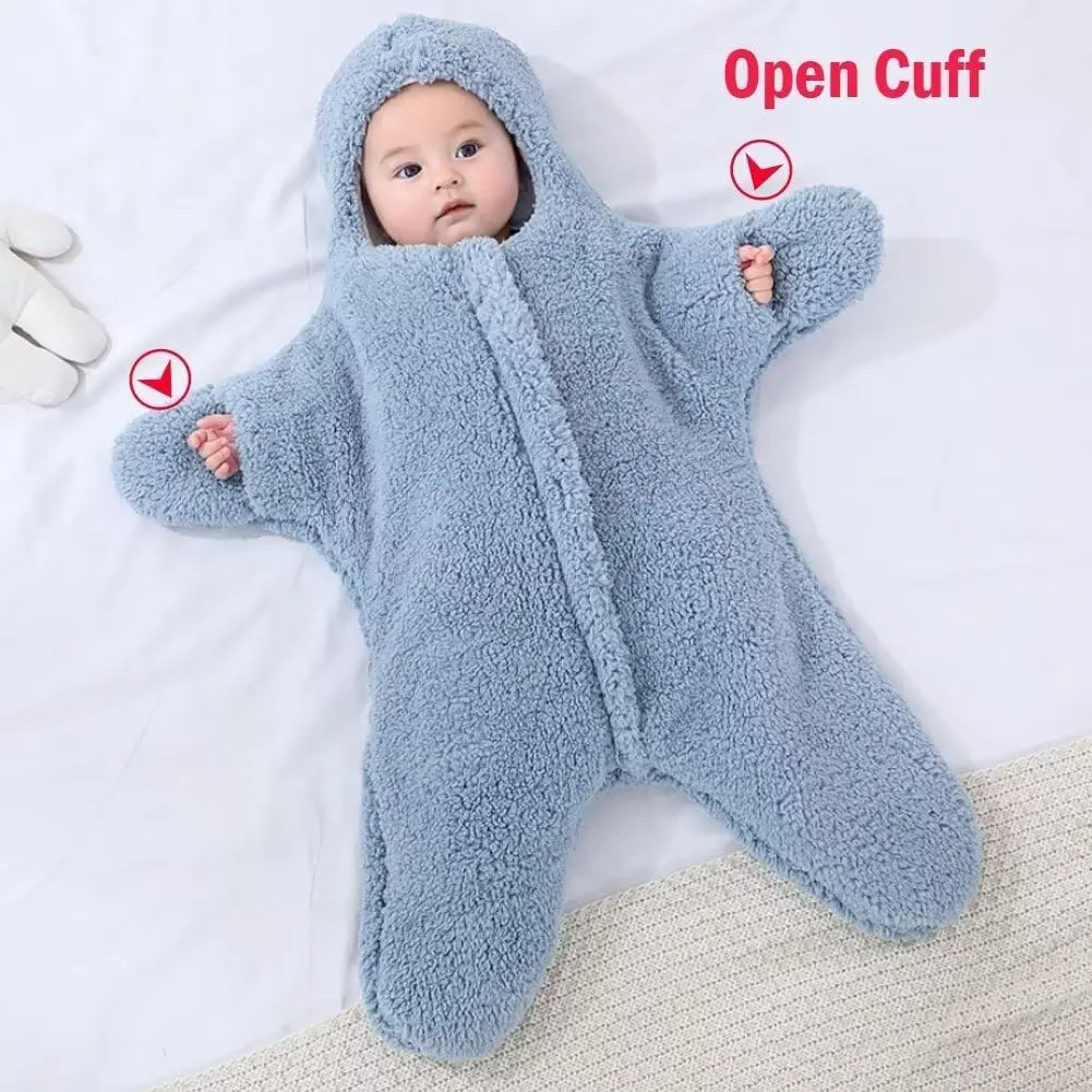 Baby Starfish Onesie, Cute Thick Fleece Wearable Soft Newborn Baby Infant Warm Swaddle Wrap Sleeping Sack