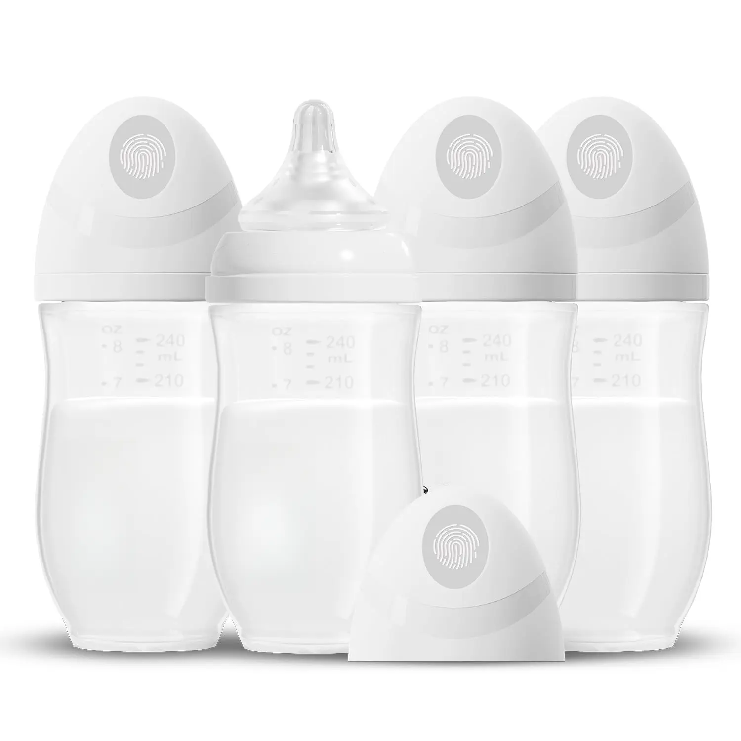 (NOT Glass) Baby Breastfeeding Bottles, Medium Flow Nipples (M), 3 Months +, Wide Neck, White, 8 oz - 4 Pack