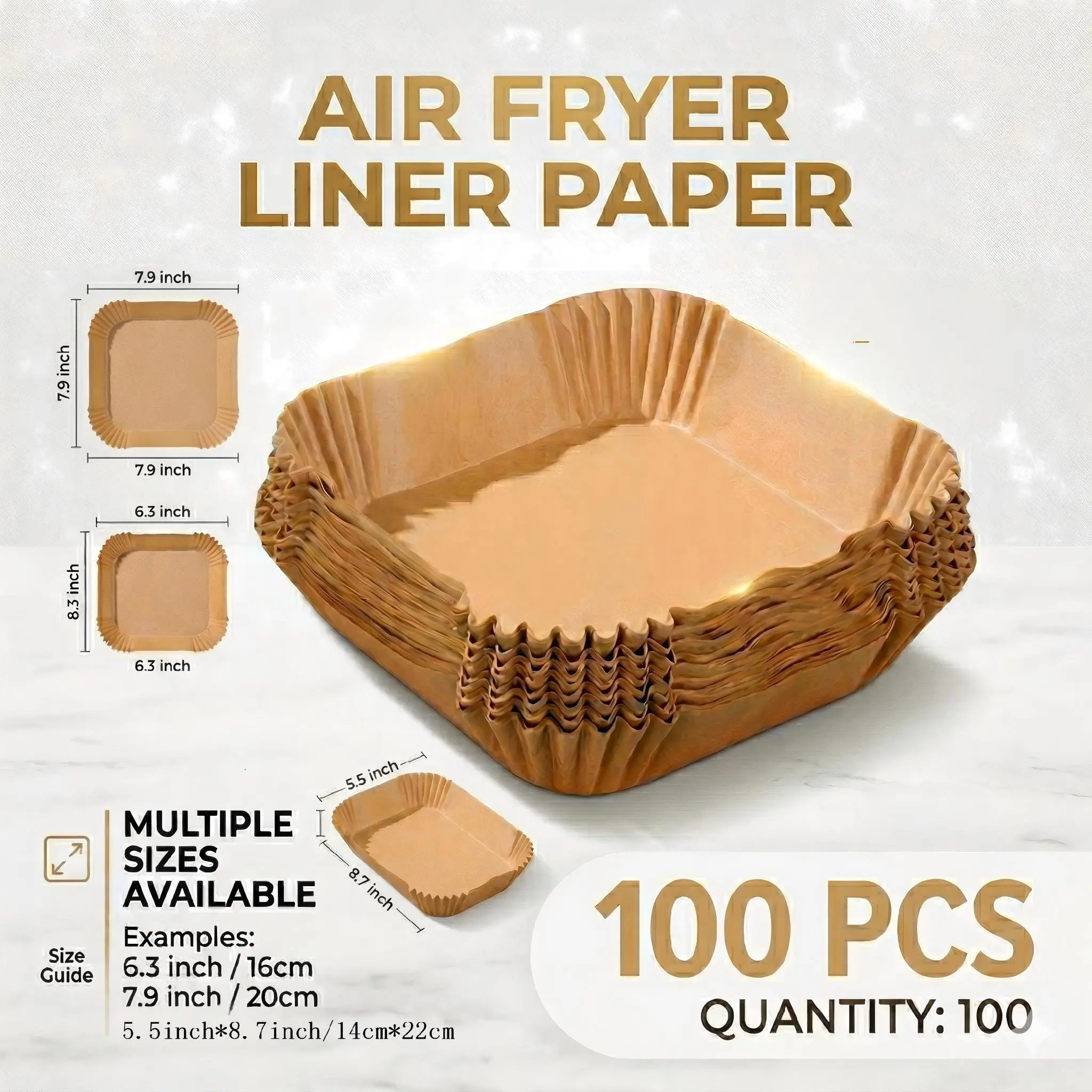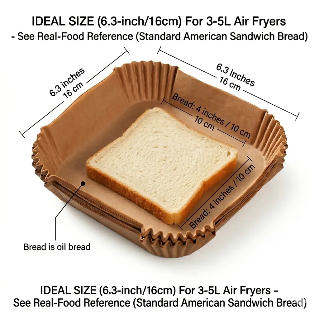6.3 inches (16 cm) Square:Perfect for compact, small-capacity air fryers, about 3L–5L.
