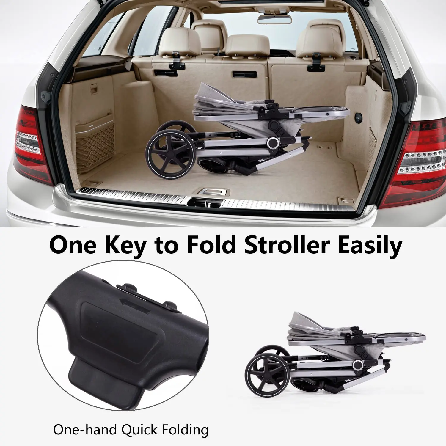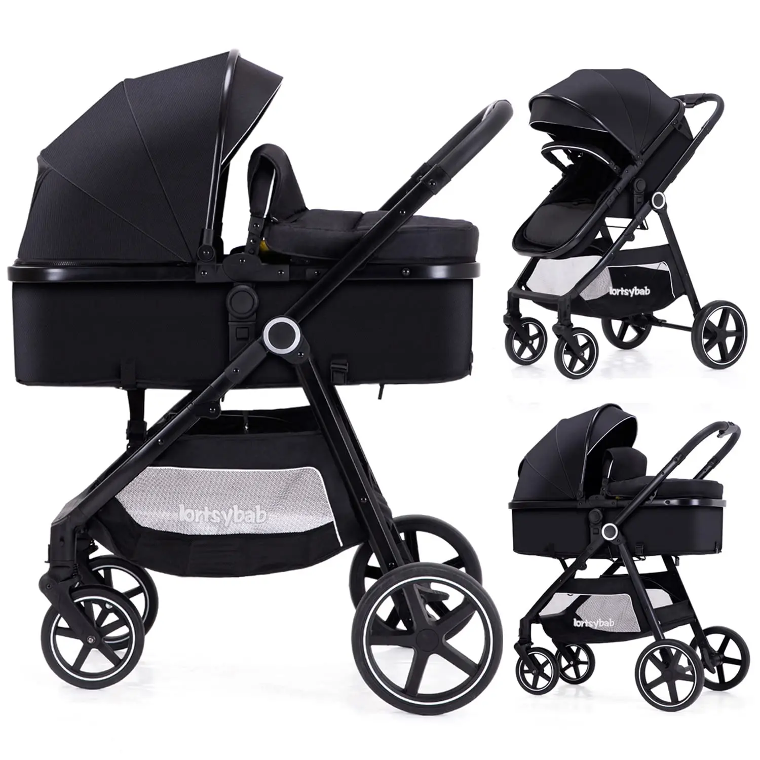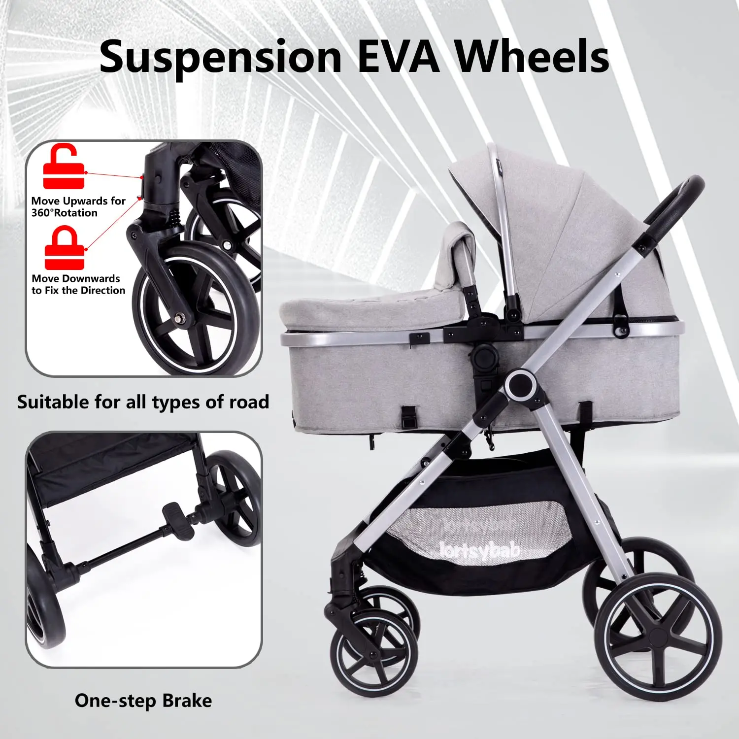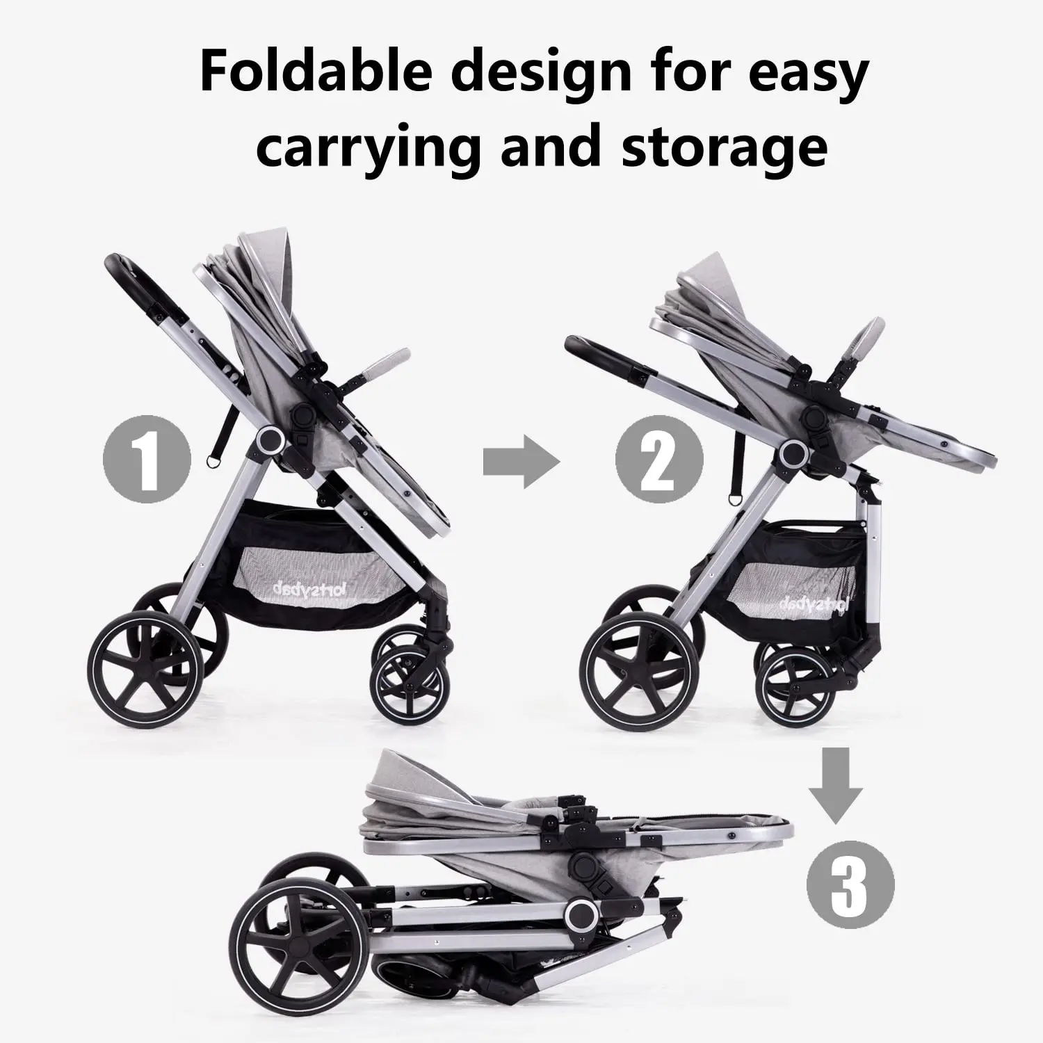 2-in-1 Baby Stroller - Folding Infant Newborn Pram Stroller with Reversible Seat - Toddler Strollers for 0-36 Months Old Babies (Grey)
