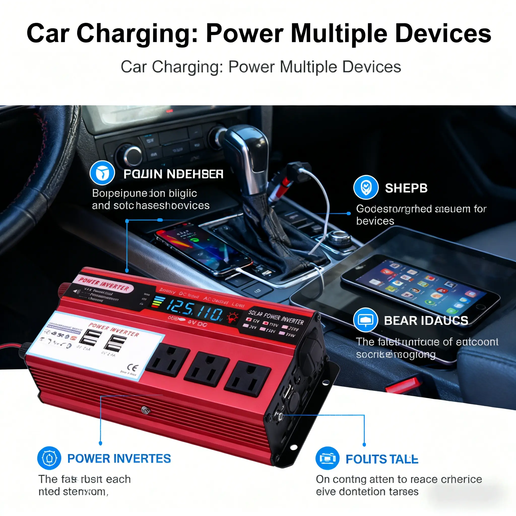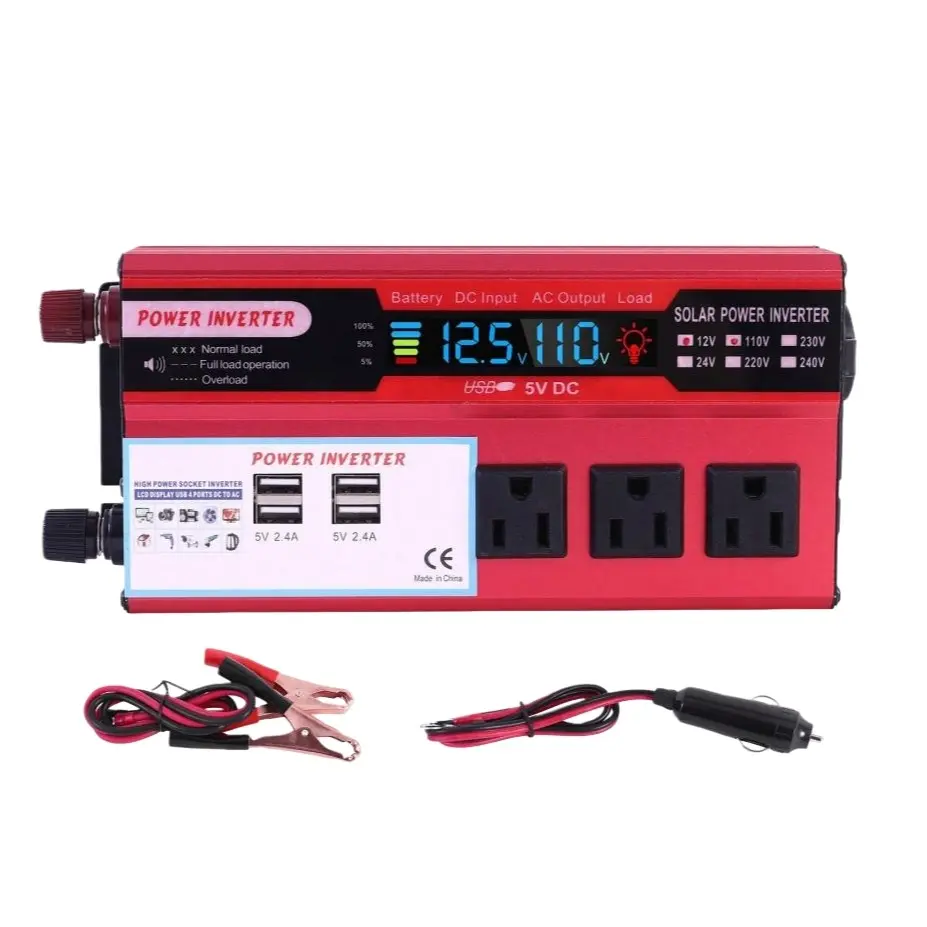 Transform your vehicle's 12V DC to 110V AC effortlessly. This converter features 3 AC sockets and 4 USB charging ports, perfect for truck, RV, and camping. It offers 5000W peak power, ensuring you have ample energy for outdoor activities. Ideal for emergencies, it includes built-in overload, overheat, and short circuit protection. Stay powered on the go with this versatile inverter.