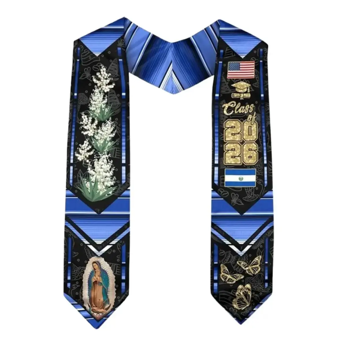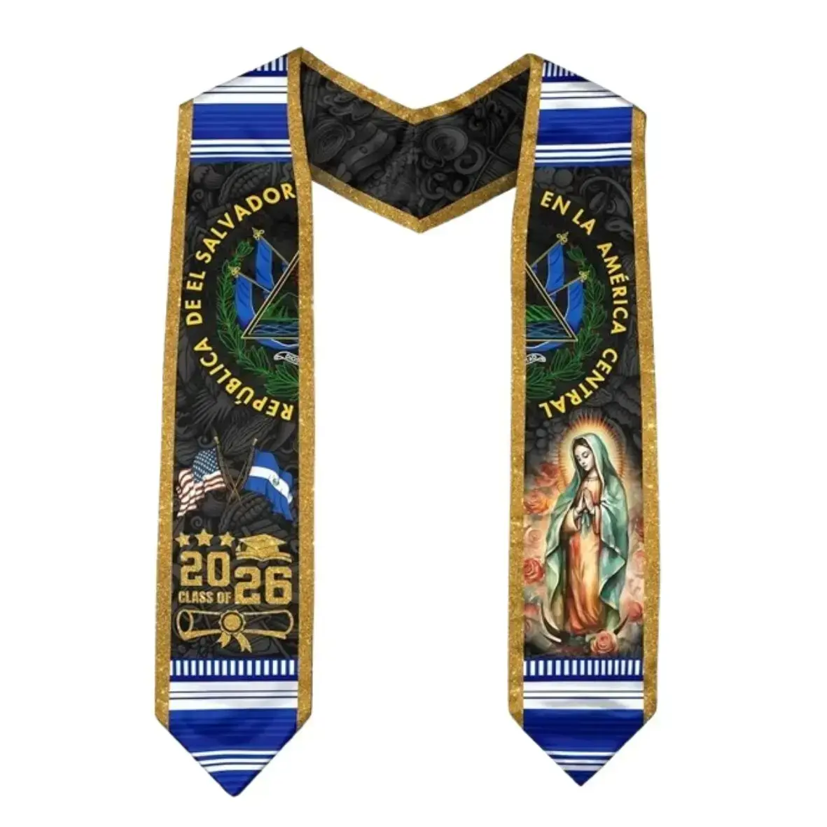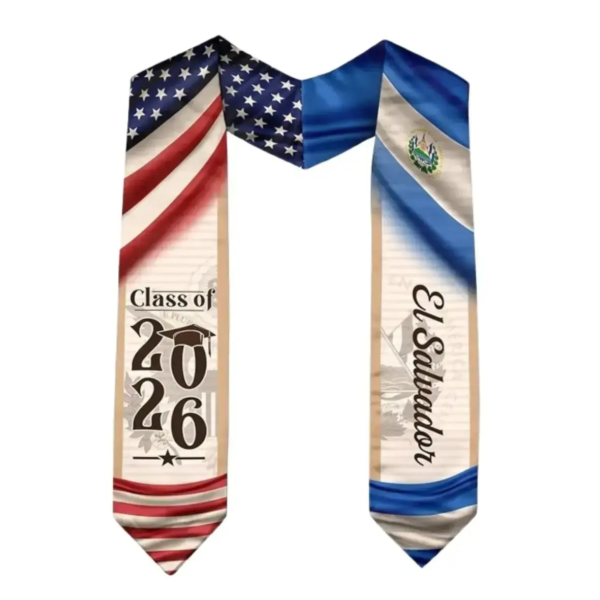 El Salvador Graduation Stole Class of 2026 – Salvadoran American Flag Sash, Cultural Pride Graduation Gift for High School College