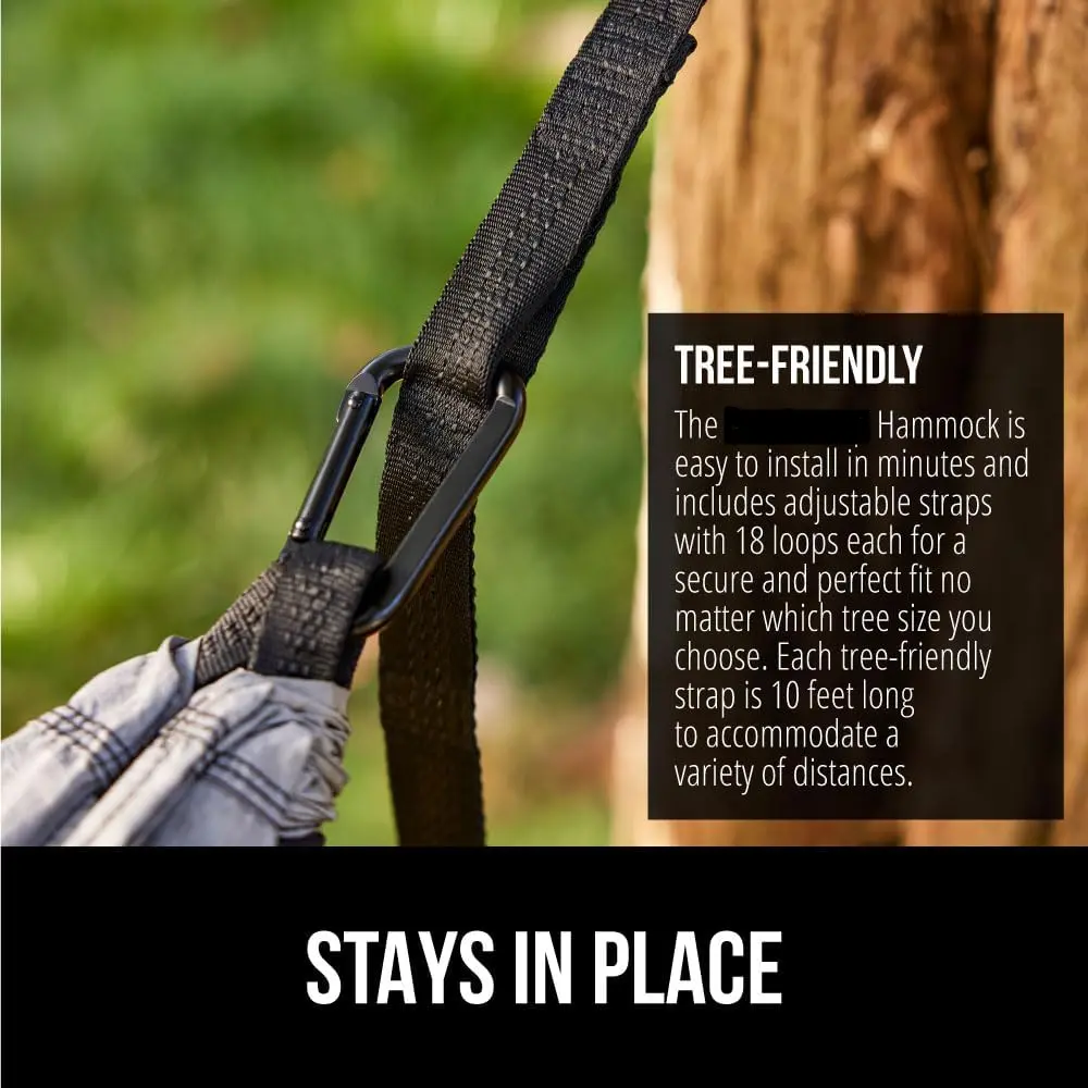 ·Adjustable Hanging SystemComes with 2 steel carabiners and 10 ft adjustable straps featuring 18 loops for flexible height and distance setup between trees.