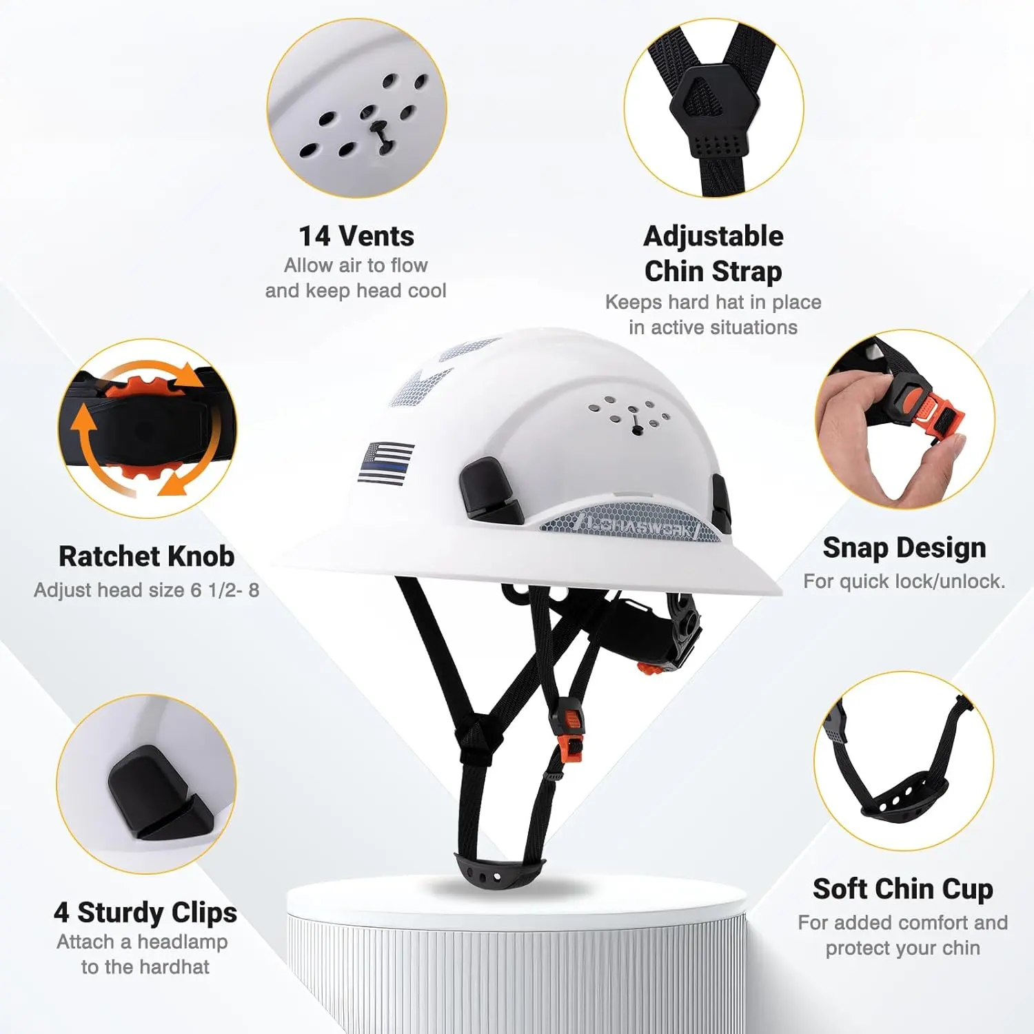 🛡️ 1.ABS Material with Full Brim Coverage– Made from durable ABS material.Full brim style offers additional protection from rain, sun, and outdoor elements on the job site.