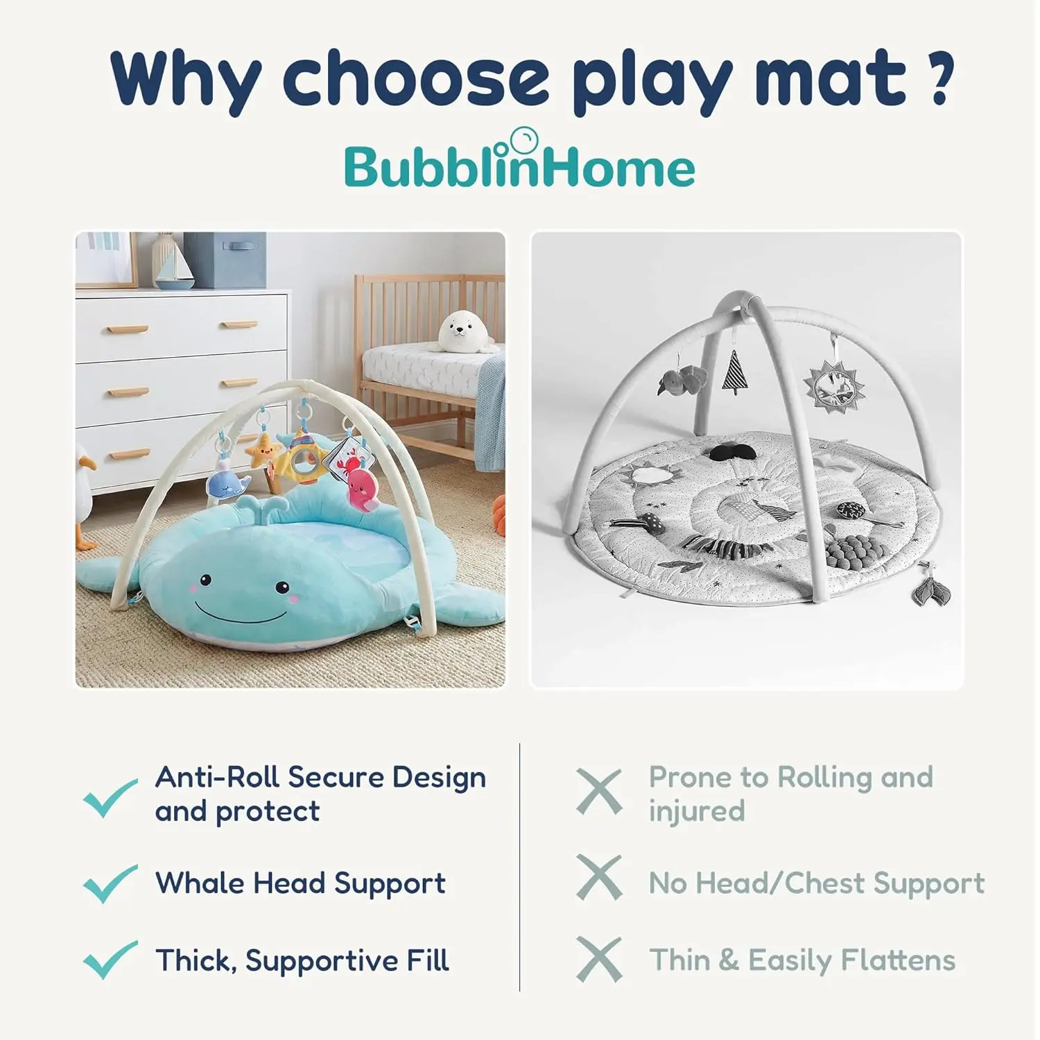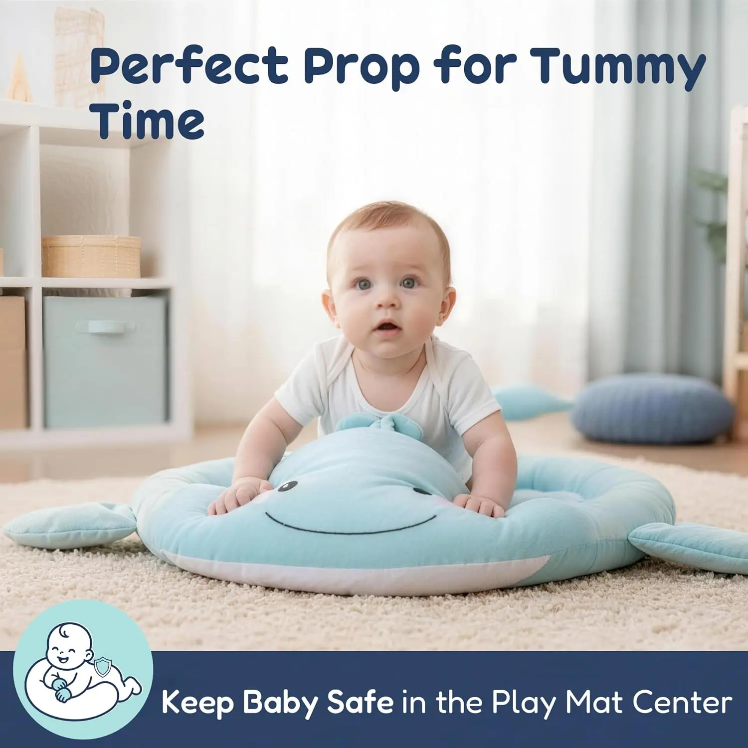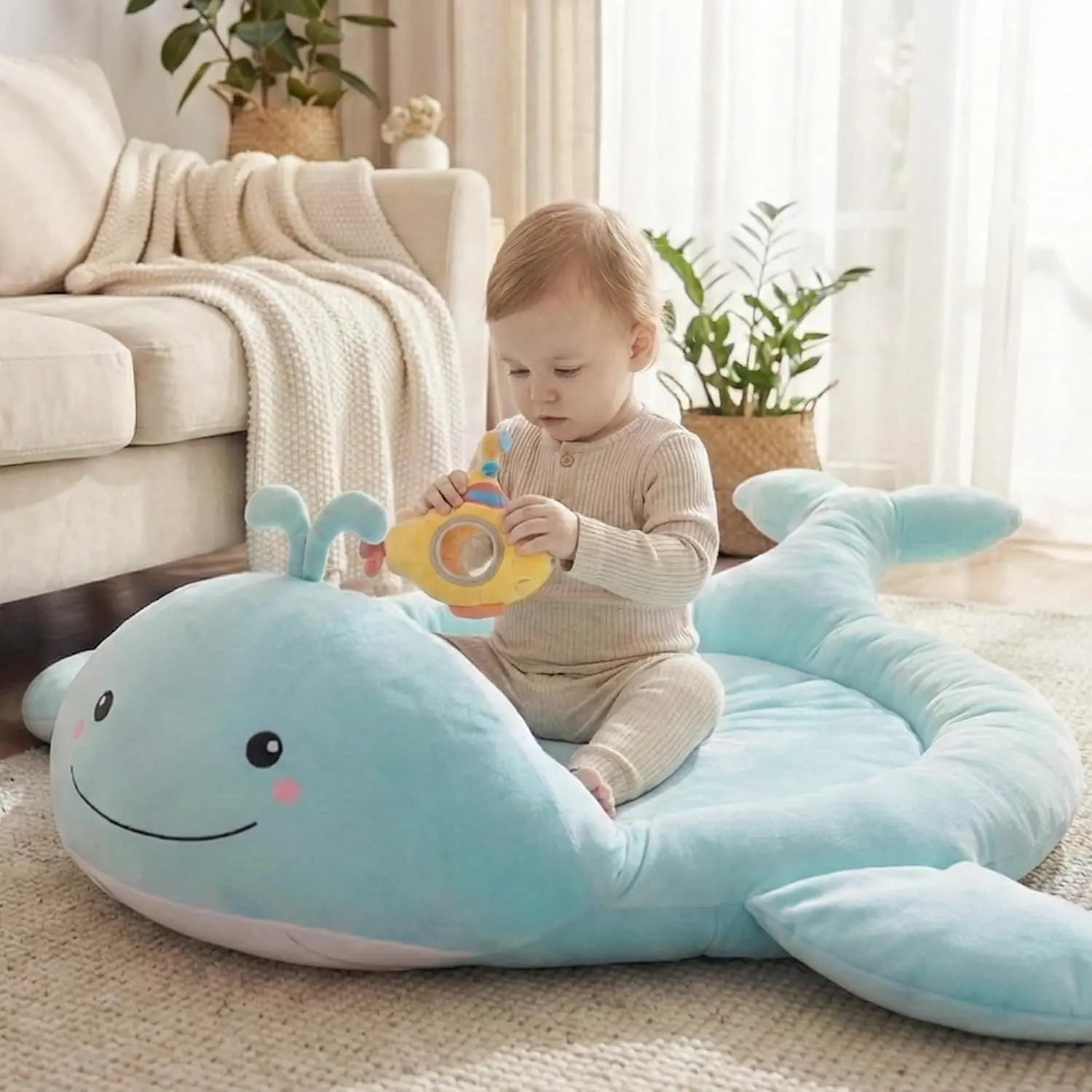 Baby Play Mat, Whale Tummy Time Mat with Toys, Baby Activity Gym for Infants 0–12 Months Sensory Floor Mat for Boys & Girls