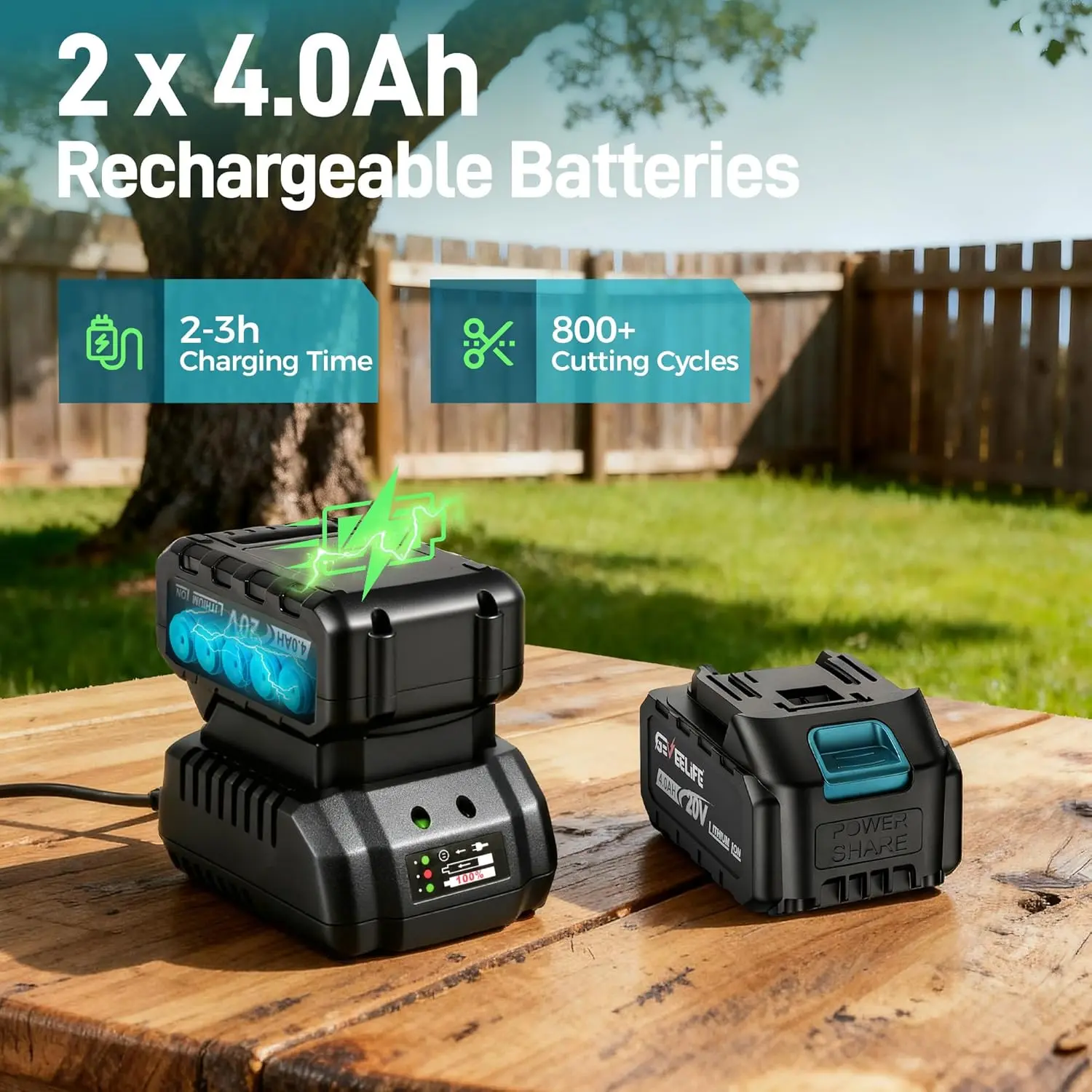 ·【High-efficiency Dual Battery System】The electric pruning shears comes with two 4.0Ah high-capacity batteries and a fast charger, providing full charge in just 2-3 hours. Enjoy over 800 cuts per charge, offering reliable power for all-day use. The built-in LCD screen shows real-time battery level and cut count, ensuring smooth, precise pruning for a hassle-free experience.