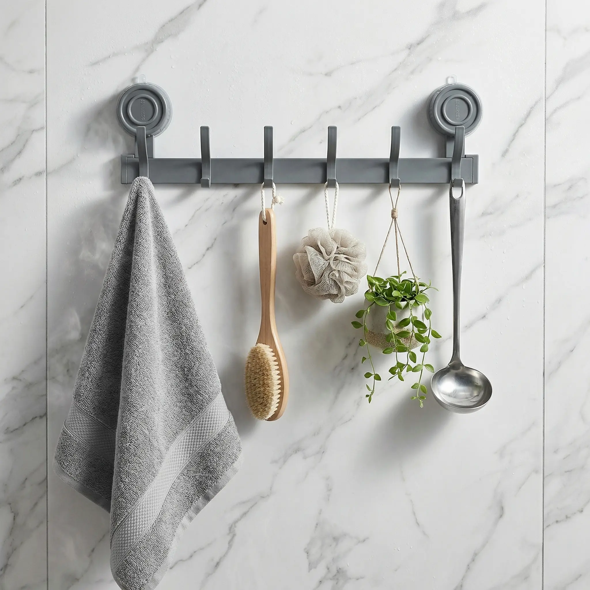 No-Drill Suction Cup Hook Rack | Premium Space Aluminum Wall Organizer