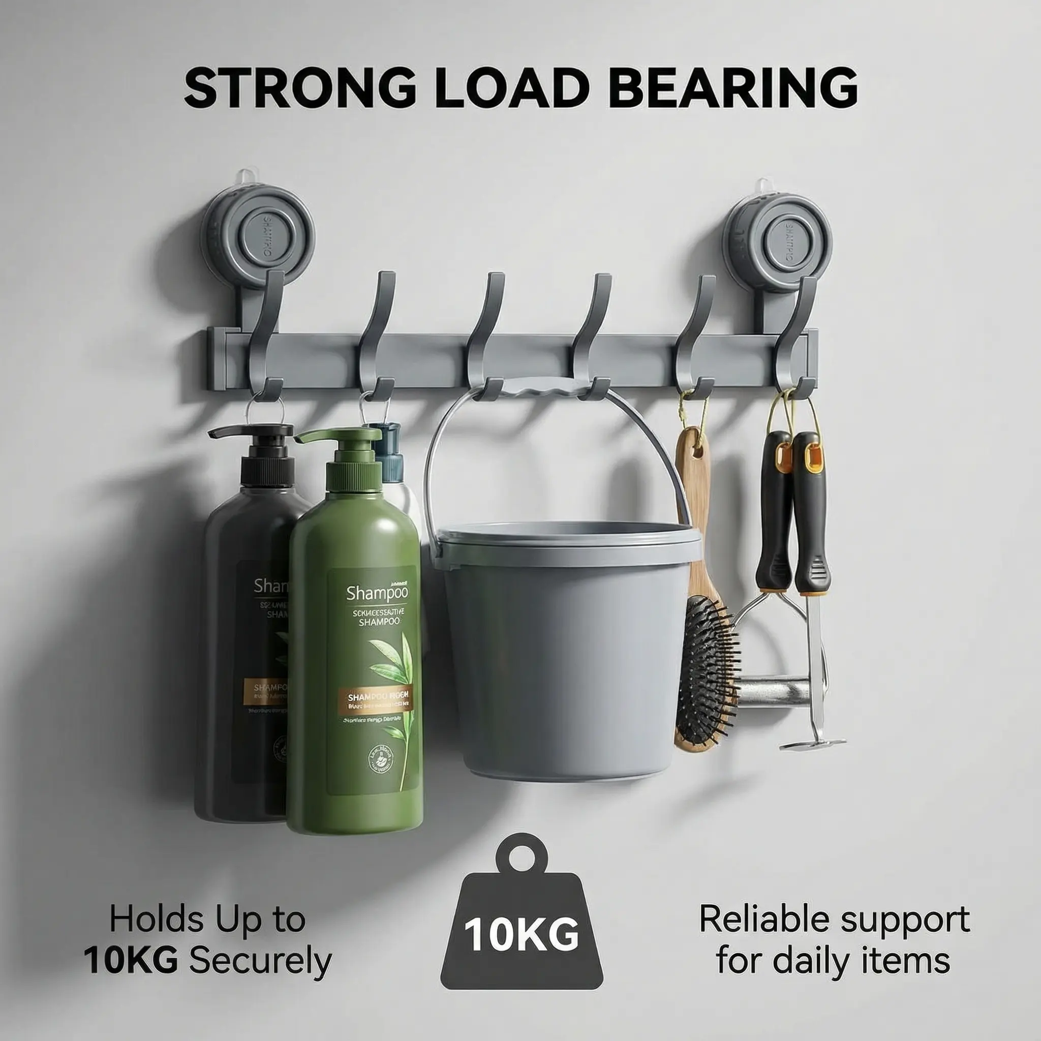 Engineered for real-life use, this hook rack securely holds up to 10KG (22lbs) of weight. Hang thick bath towels, shower baskets, cleaning tools, kitchen pots, or even coats and bags without worrying about it falling. Reliable support for all your daily essentials.