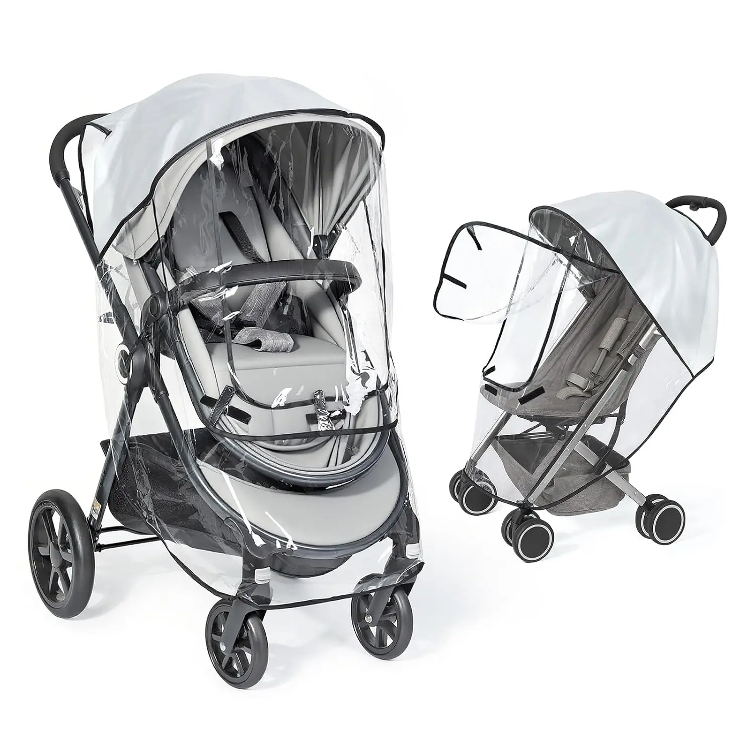 Universal Clear Stroller Rain Cover, No-Zip Waterproof Stroller Cover - Food Grade EVA & Frosted PVC, Baby Travel Weather Shield, Breathable Rain Cover for Most Single Strollers, Black