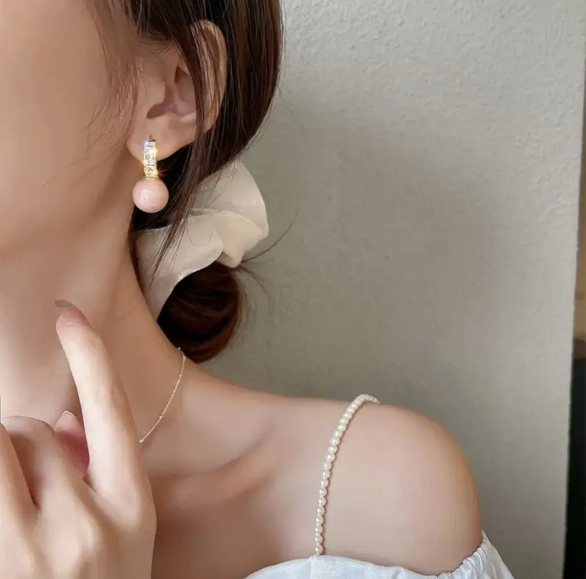 These earrings are a must-have for those who love subtle yet stylish accessories. The blush pink pearl adds a touch of elegance to any outfit. Pair them with your favorite dress or blouse for a polished look.