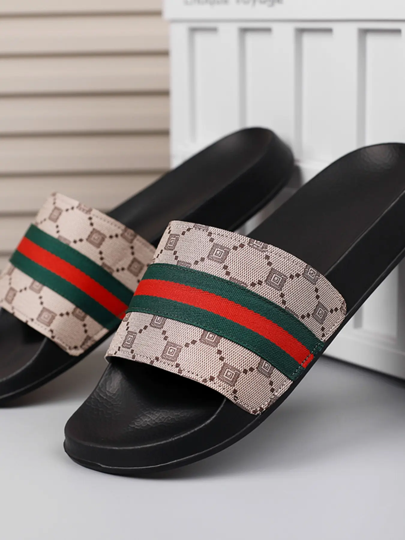 Trendy brand slippers for men to wear outside in summer, anti-slip and wear-resistant, outdoor casual beach cooling slippers, home bathroom bathing one-line slippers