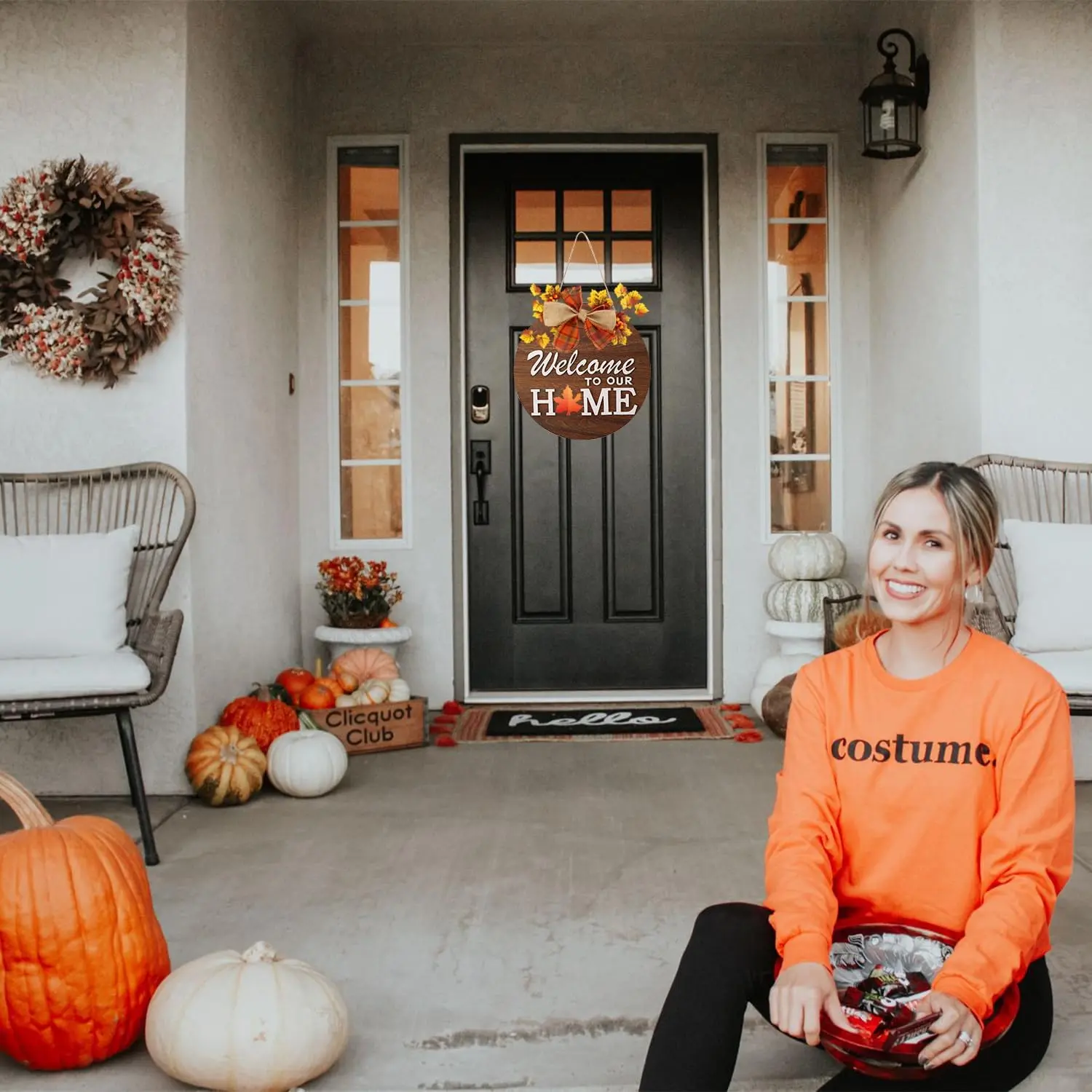 Interchangeable Welcome Sign for Front Door with 4 Seasonal Wreaths and 14 Changeable Icons, Farmhouse Front Door Signs, Door Decoration Porch Decor, Seasonal Wooden Home Sign home décor (6wood)