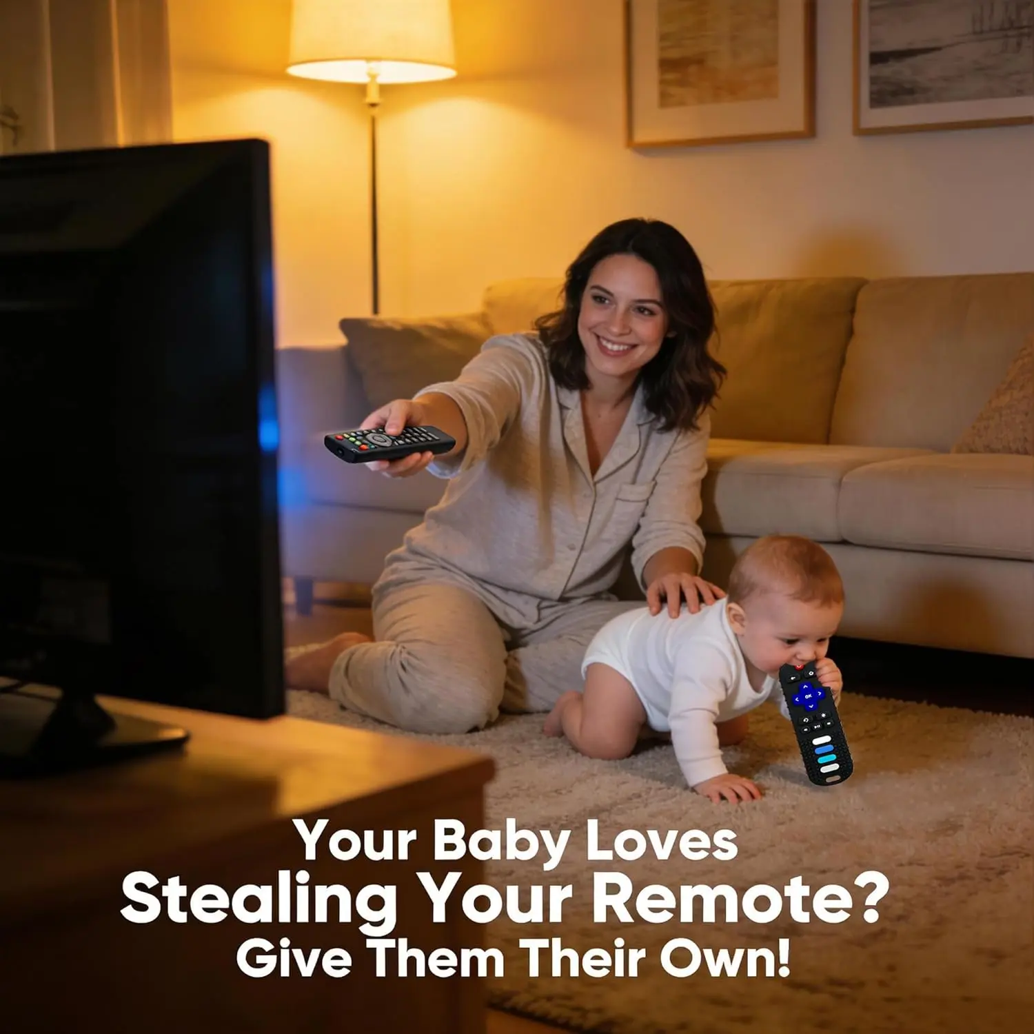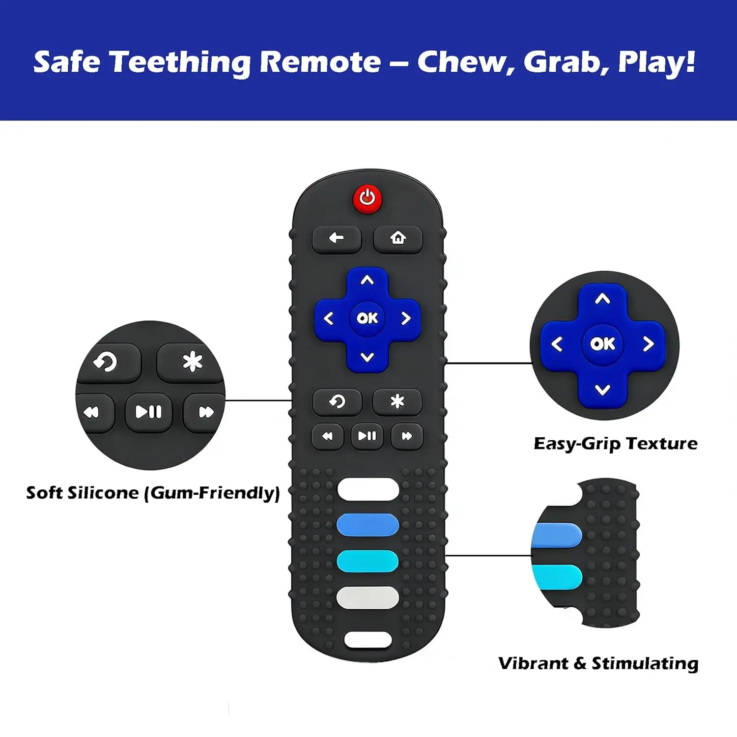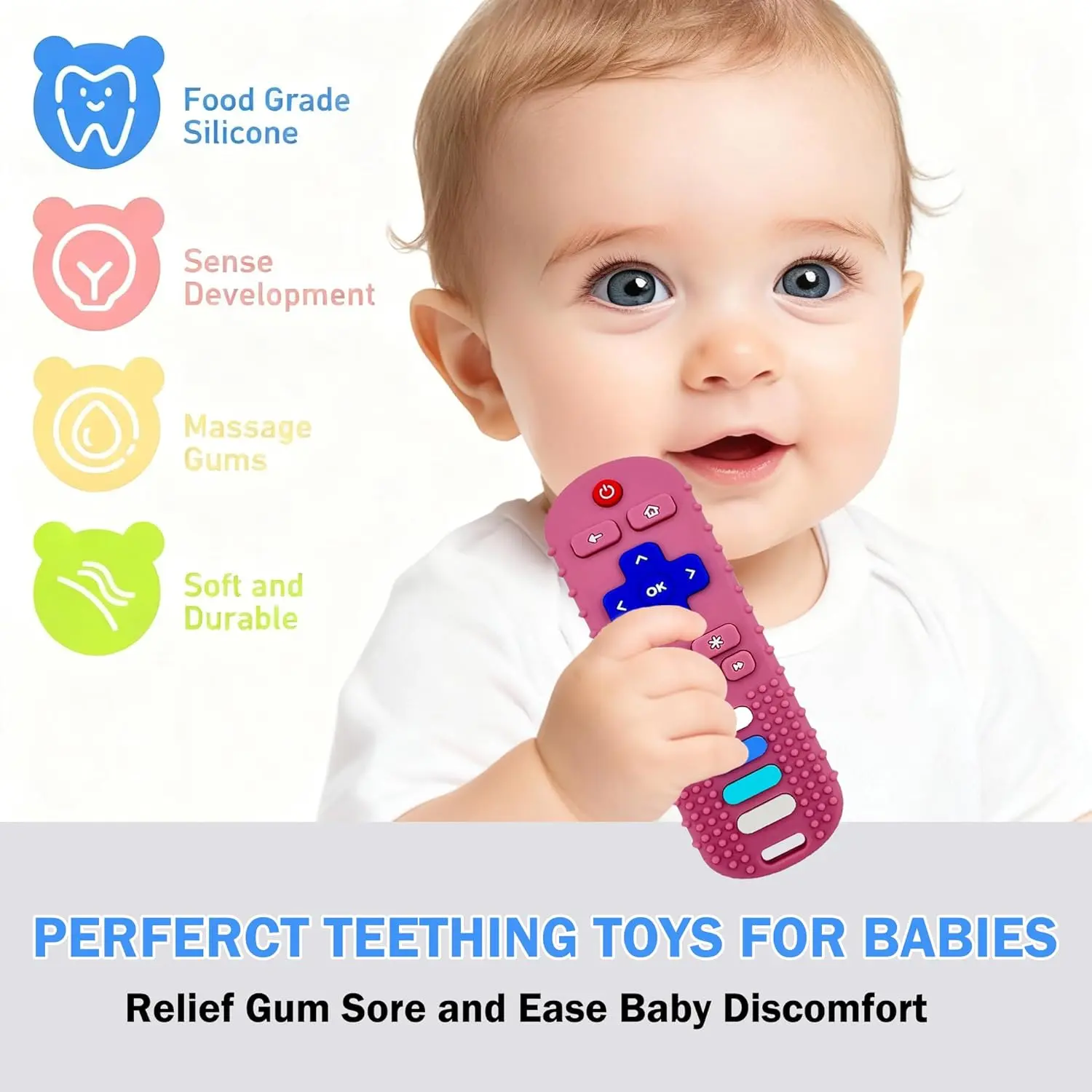 2-Pack Baby Teething Toys-TV Remote Control Shape Silicone Infants Teething Toys for Babies 0-18 Months,BPA-Free (Black+Pink)