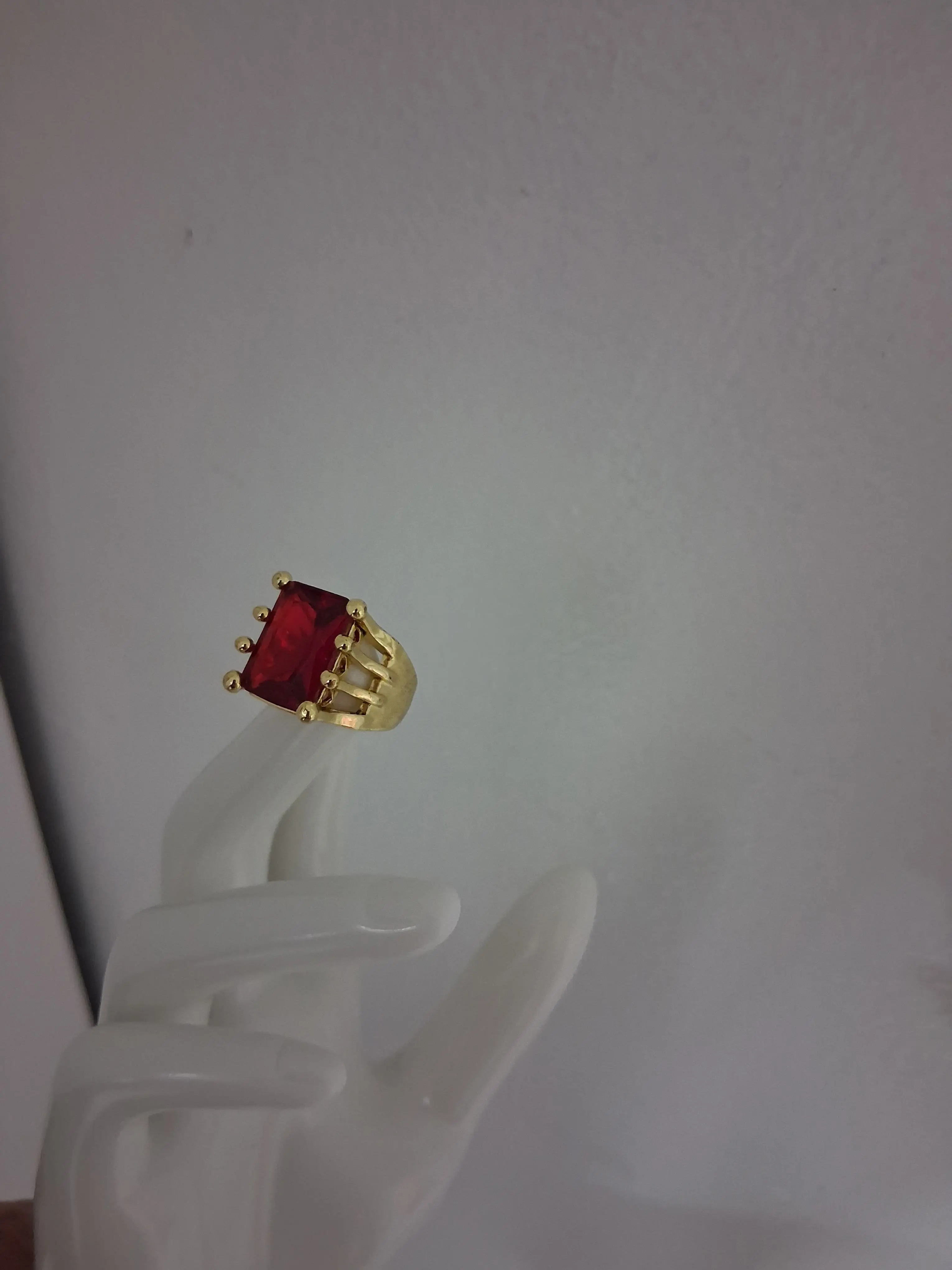 Gold Ring with Red Square Crystal – Bold Luxury Style