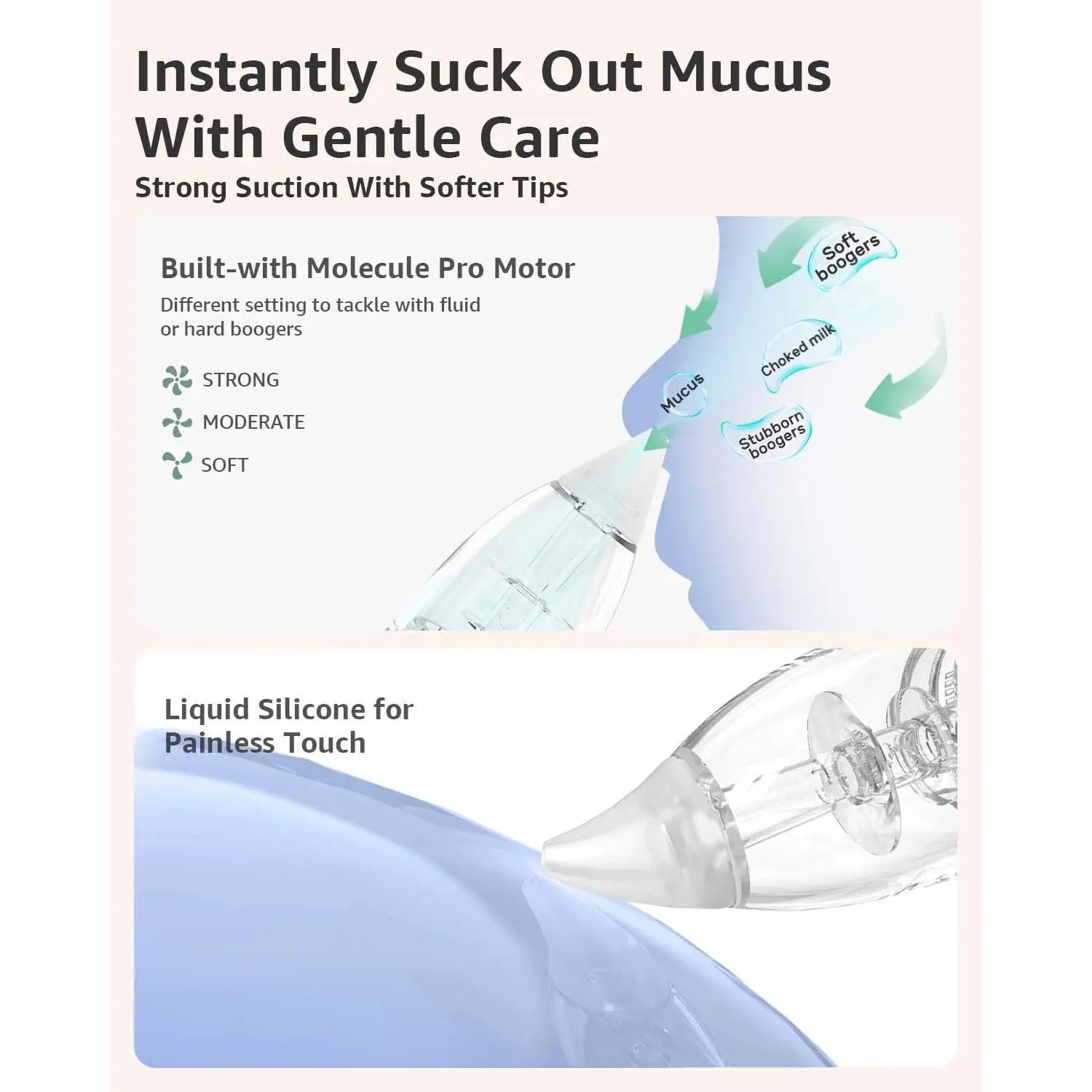 Nasal Aspirator for Baby, Electric Baby Nose Sucker with Larger Suction Chamber and More Powerful Suction, Automatic Nose Cleaner with Music and Light Soothing Function