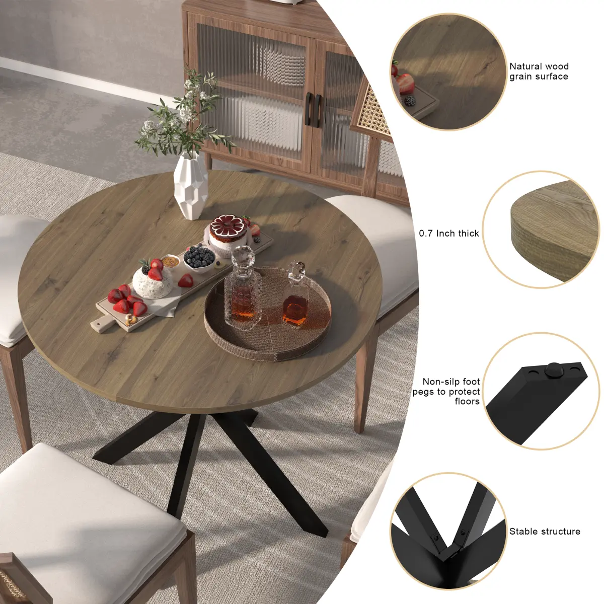 Round Dining Table, Small Circle Kitchen Table with Metal Black Legs for 2-4 people,Modern Dining Room Table, Brown (only table)