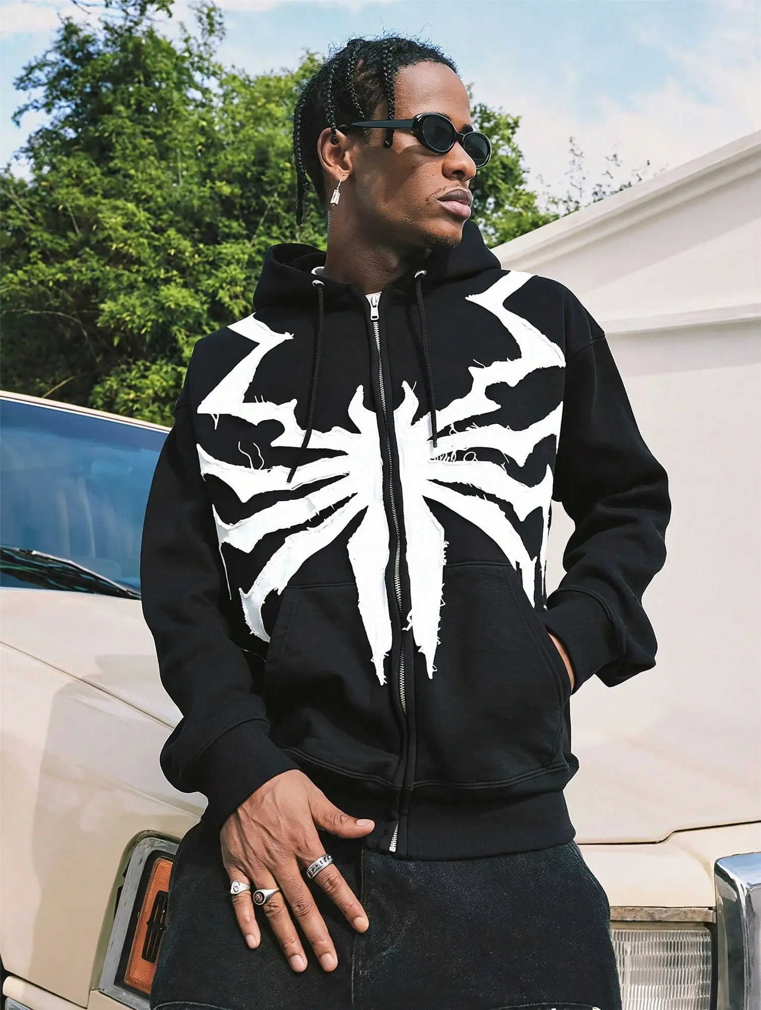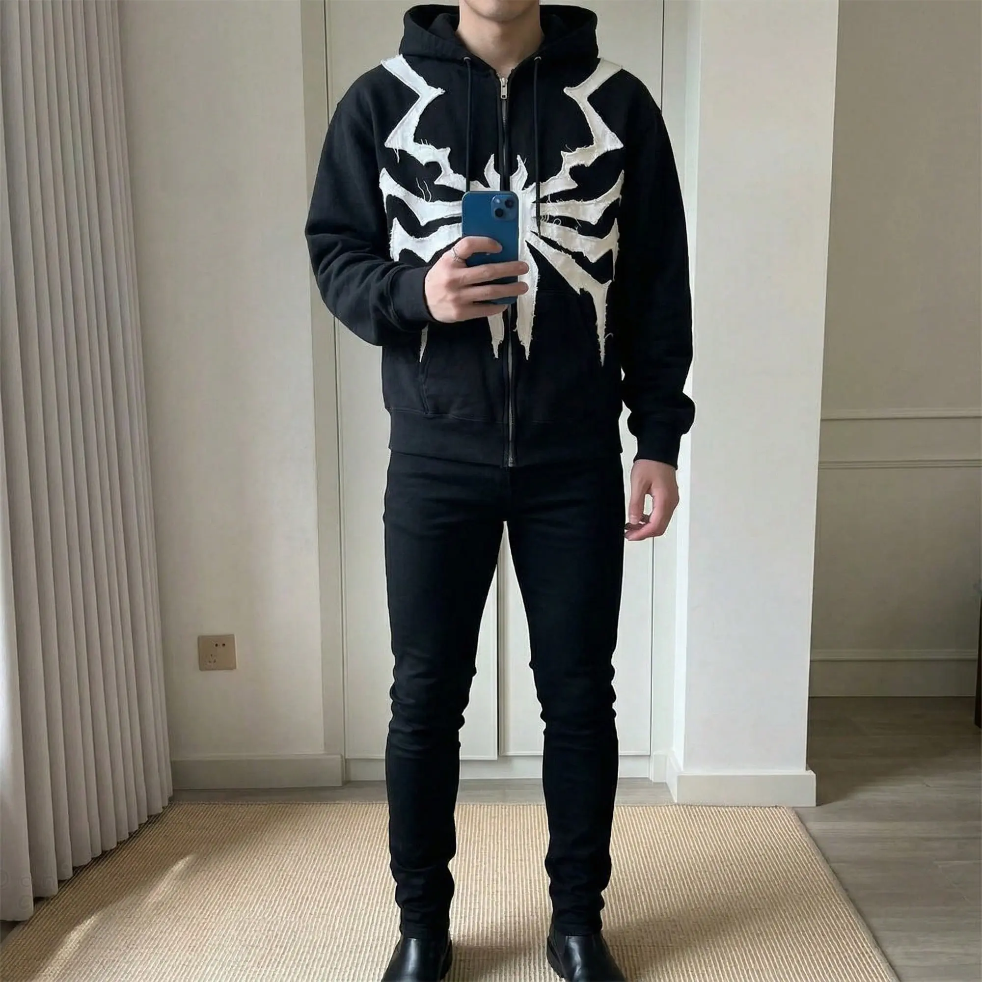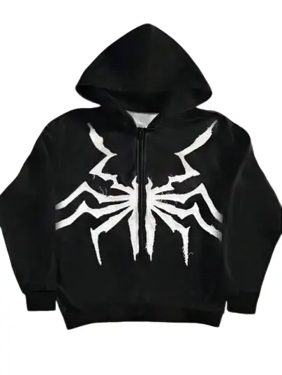 American Gothic Spider Patch Cloth Embroidered Hoodie Y2K Zipper Design High Men's & Women's Sweatshirt Tops Streetwear Menswear Long Sleeve Casual Oversize Baggy Loose Pullover Black Oversized Graphic Print All Oversized Christmas Halloween Thanksgiving Day