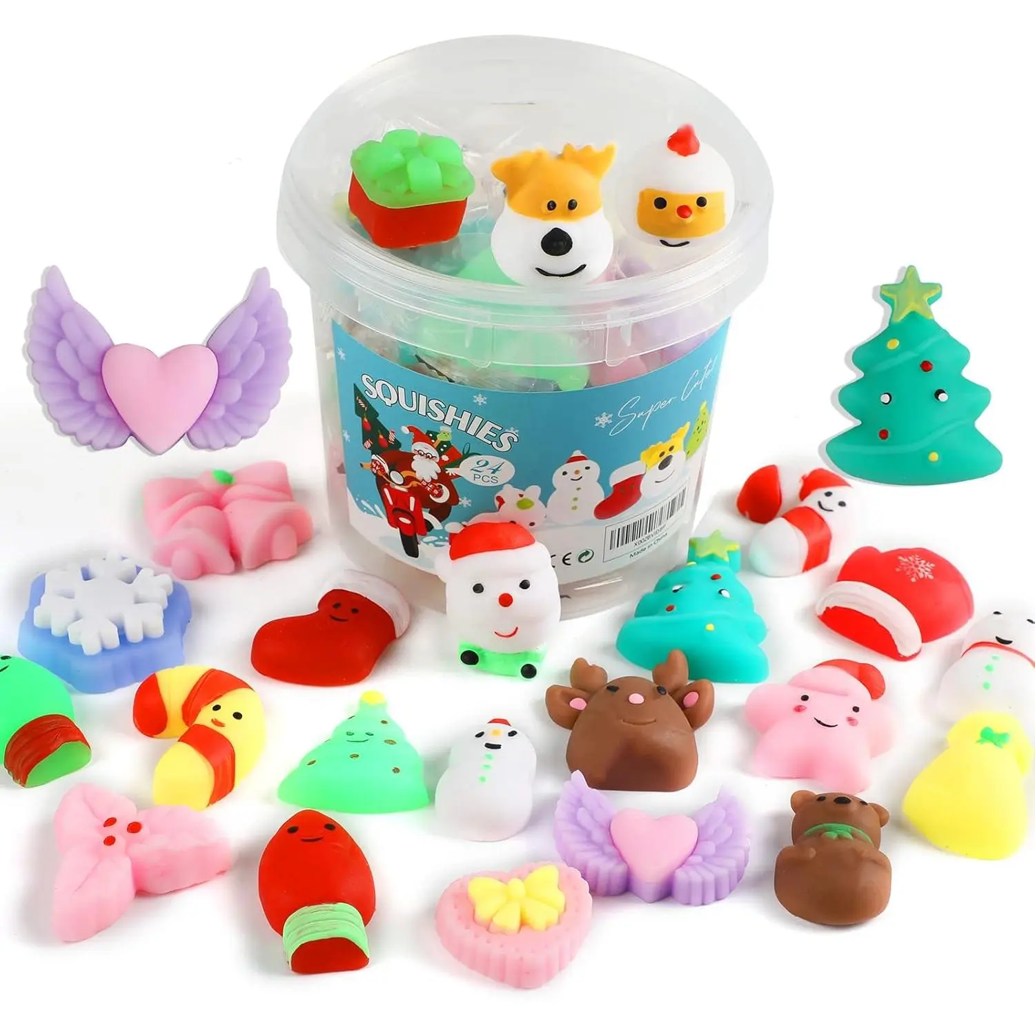 Squishies Squishy Toy 24pcs Party Favors for Kids Mochi Squishy Toy moji Kids Mini Kawaii squishies Mochi Stress Reliever Anxiety Toys Easter Basket Stuffers fillers with Storage Box
