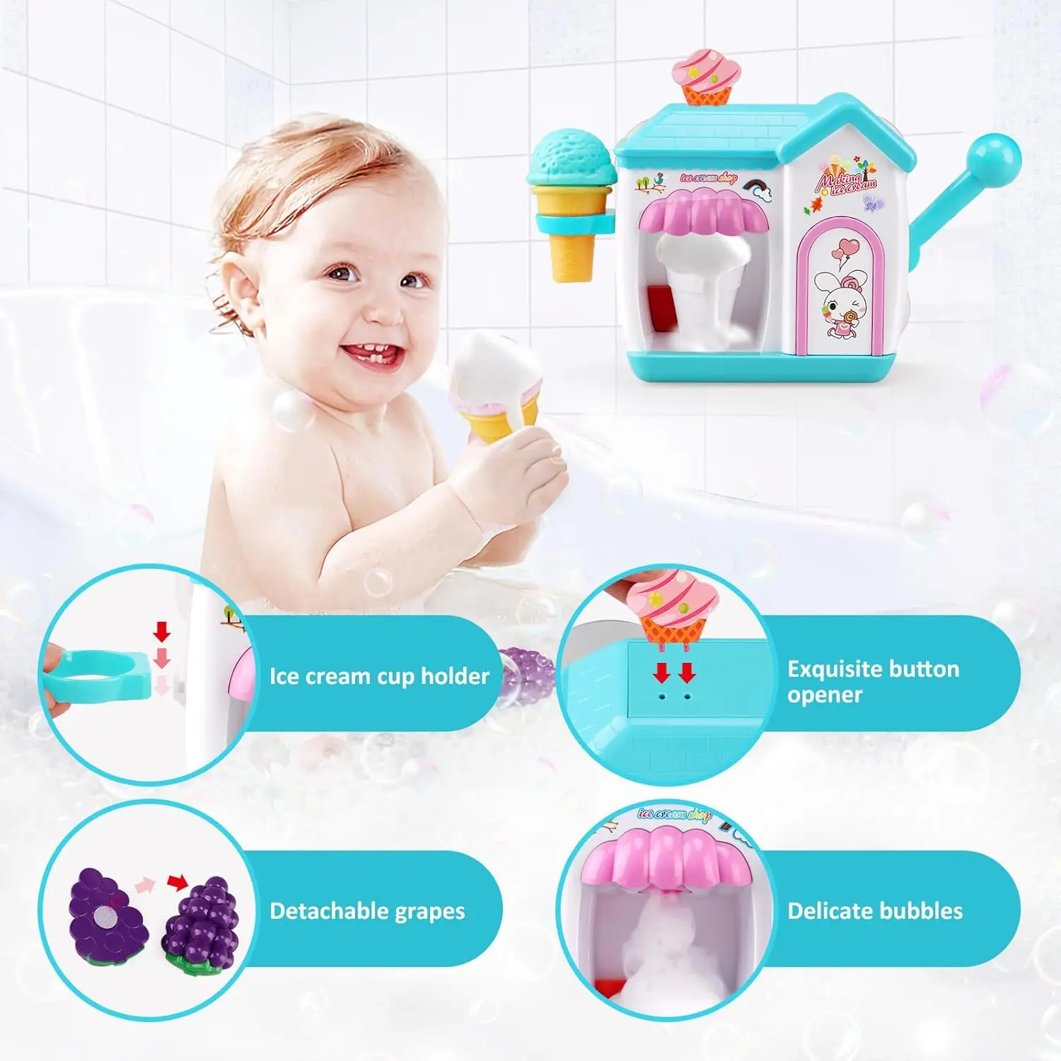 Toddler Bath Toys for 3 4 5 6 7 8 Years Old Girls, Bubble Ice Cream Maker Bath Toy, Shower Toys, Toddler Bath Toys Age 2-4, Bathtub Bubble Machine, Toy for 3 4 5 6 7 8 Years Old Boys Girls