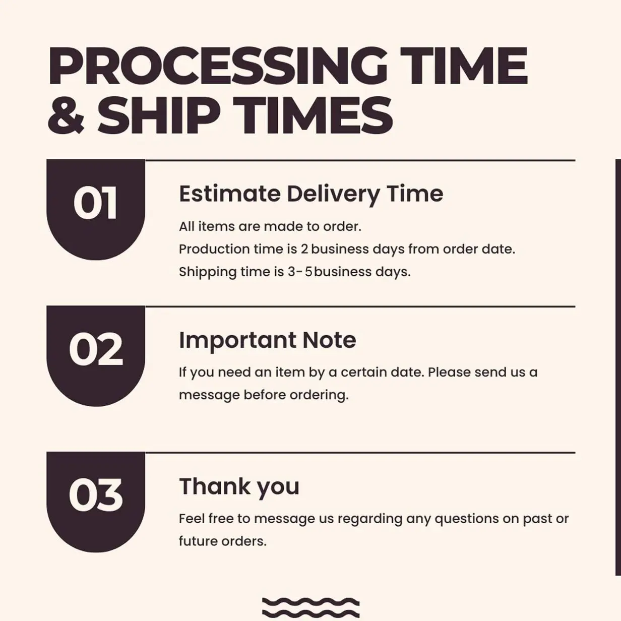 ·Peak times may cause delays; check our Shop Announcement for updates.
