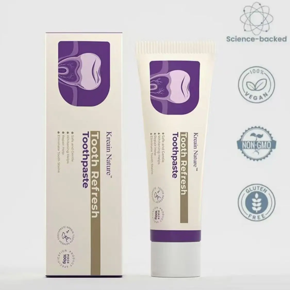 Kreain Nature Tooth Refresh Toothpaste for Fresh Breath Natural Ingredients Gentle Care Whitening Helps Repair Stains Eliminate Stains.