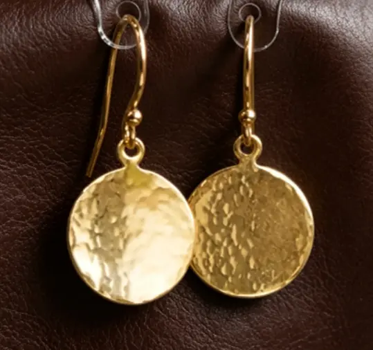 ·Textured Gold Circle: The hammered texture adds depth and character.