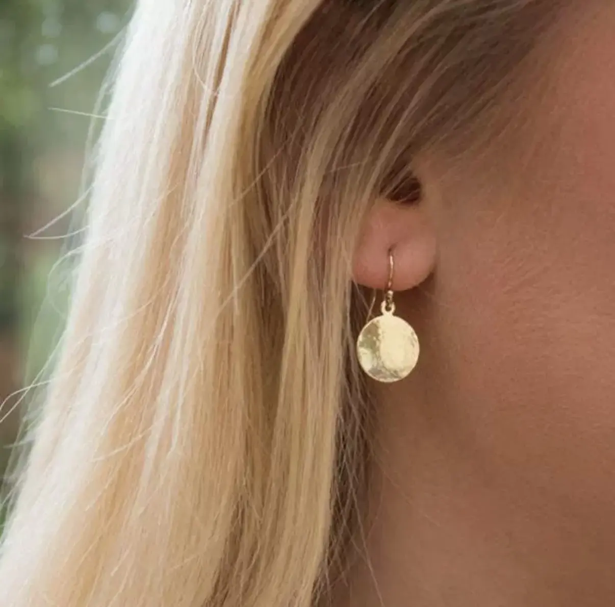 Discover the Boho Hammered Gold Disc Drop Earrings, perfect for women who love a touch of elegance. These textured gold circle dangle earrings add a unique flair to any outfit. The hammered design gives a rustic, artisanal feel, making them a standout accessory. Ideal for casual or semi-formal occasions, these earrings are a versatile addition to your jewelry collection.