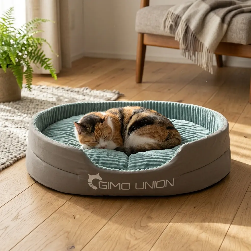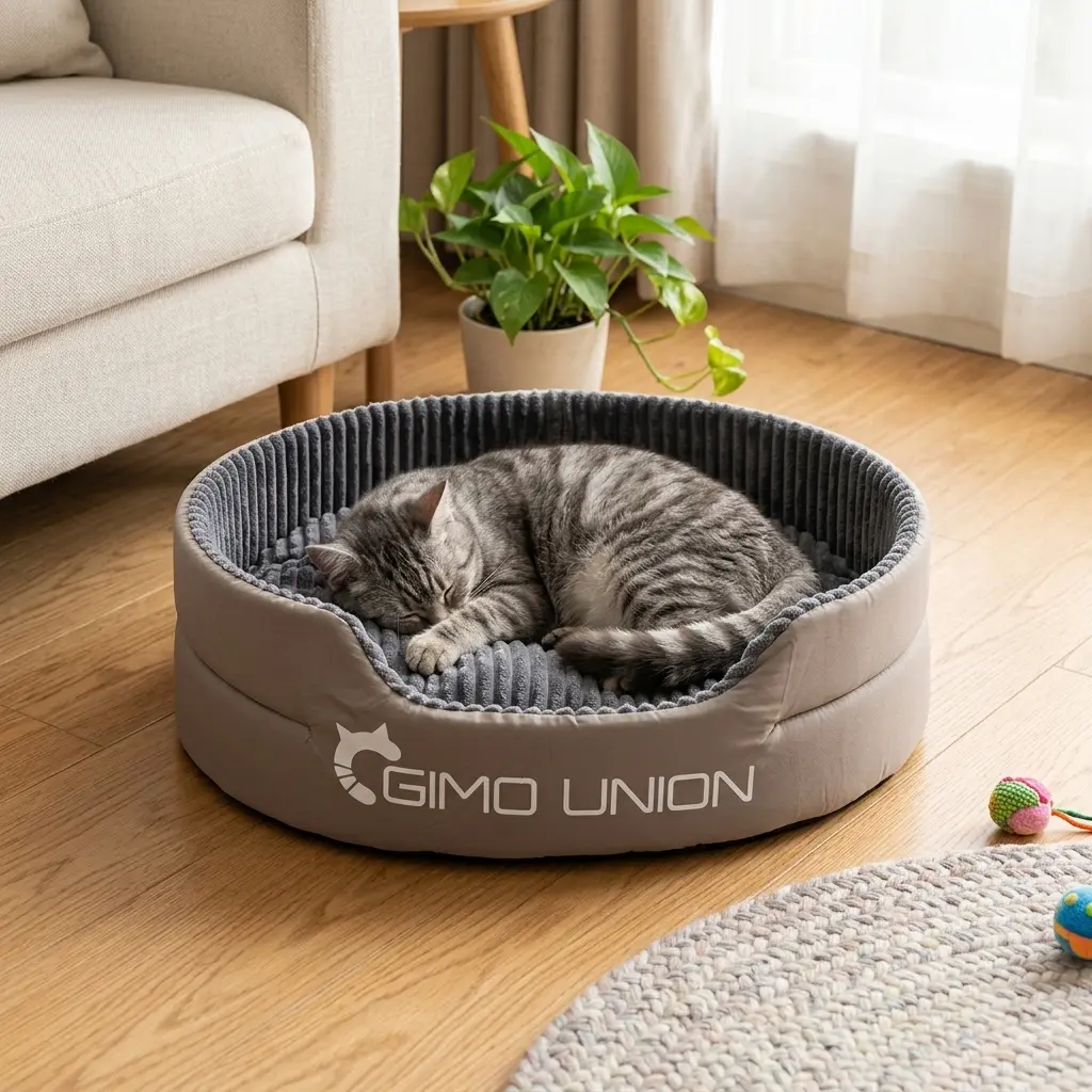 All-Season Gray Polyester Cat Bed Sofa, Thick Foam Semi-Enclosed Removable Cover No Assembly Fluffy Round Anti-Slip Pet Natural Retro Wood Tree Tower Double-Sided Luxury Washable Dog human sized