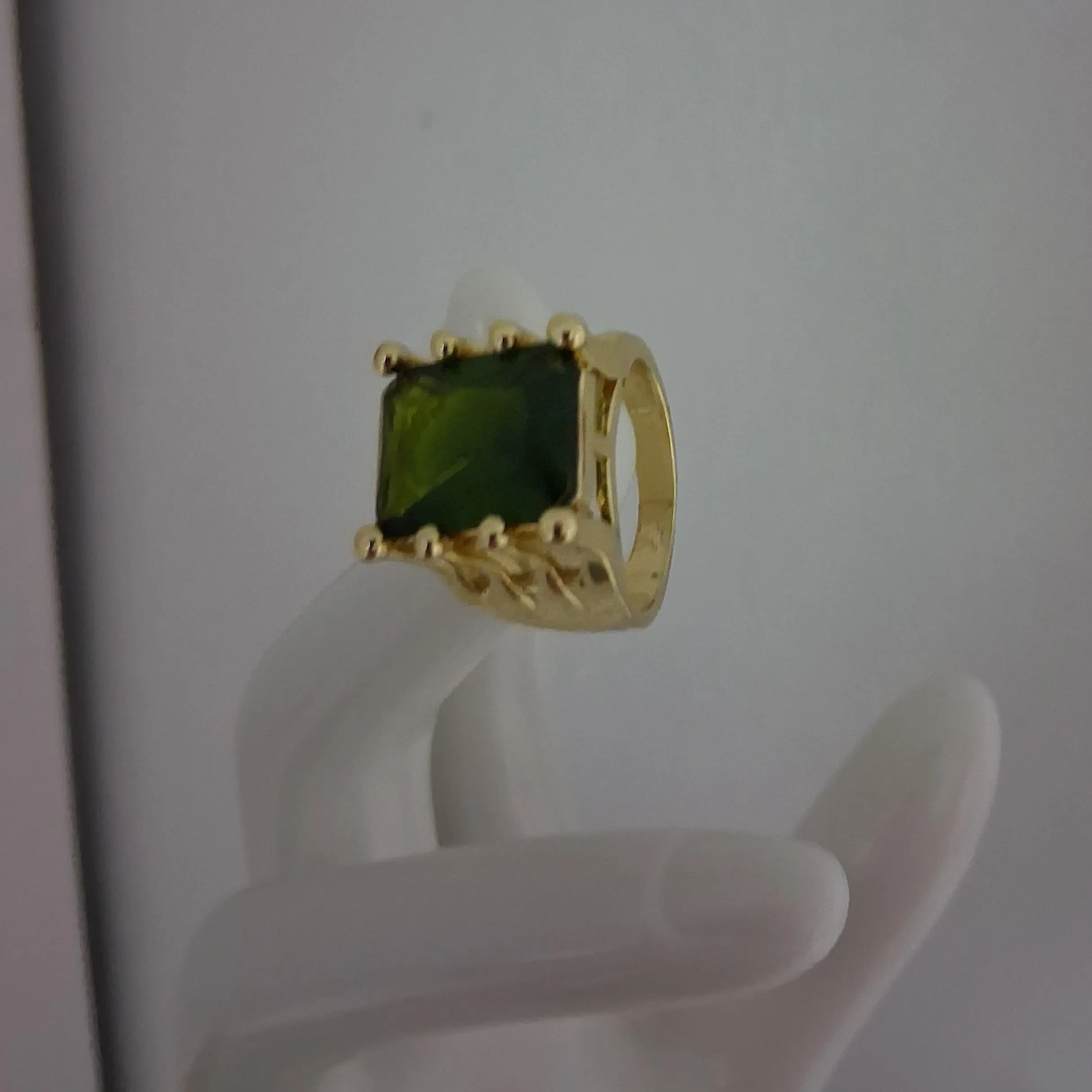 Gold Ring with Green Square Crystal – Luxury Statement Style