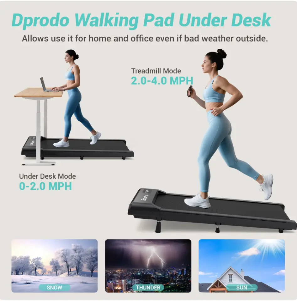 ·【2-in-1 Under-Desk Treadmill】This portable treadmill features an upgraded 2.5HP motor with low noise