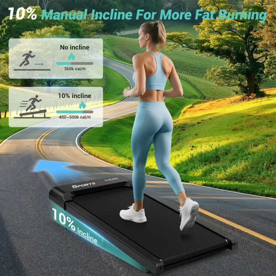 ·️【Incline-Adjustable Walking Treadmill】The walking treadmill features manual incline adjustment up to 10%, simulating real hill climbing for optimized workouts and enhanced calorie burn efficiency. Choose between level jogging or inclined running to suit your diverse exercise needs—whether working from home, studying, or simply increasing physical activity.