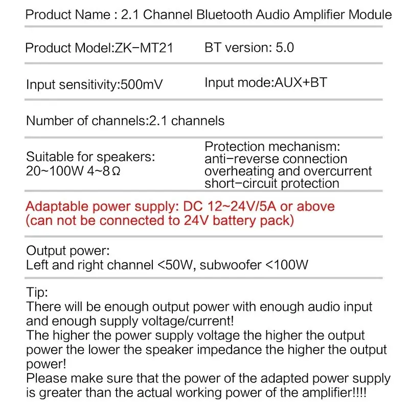 2.1 Channel Audio Receiver Power Amplifier Module, 50w X 2 + 100w BT Amplifier Board, Portable HiFi Speaker System