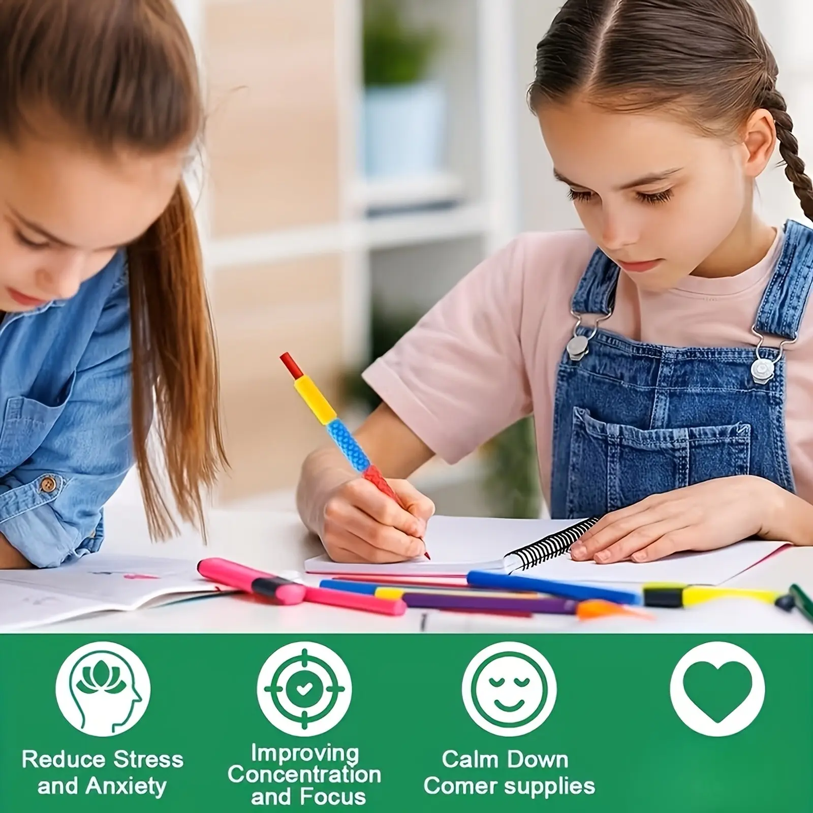 【Soft Silicone Design for Comfortable, Quiet Use & No-Slip Grip】Made from soft, flexible silicone that feels gentle in the hand, helping reduce writing fatigue during extended use. The grips stay securely on standard pencils without slipping off. Unlike noisy fidgets, they provide silent sensory input that won’t distract others or the user—making them perfect for classrooms, therapy sessions, or focused writing time.