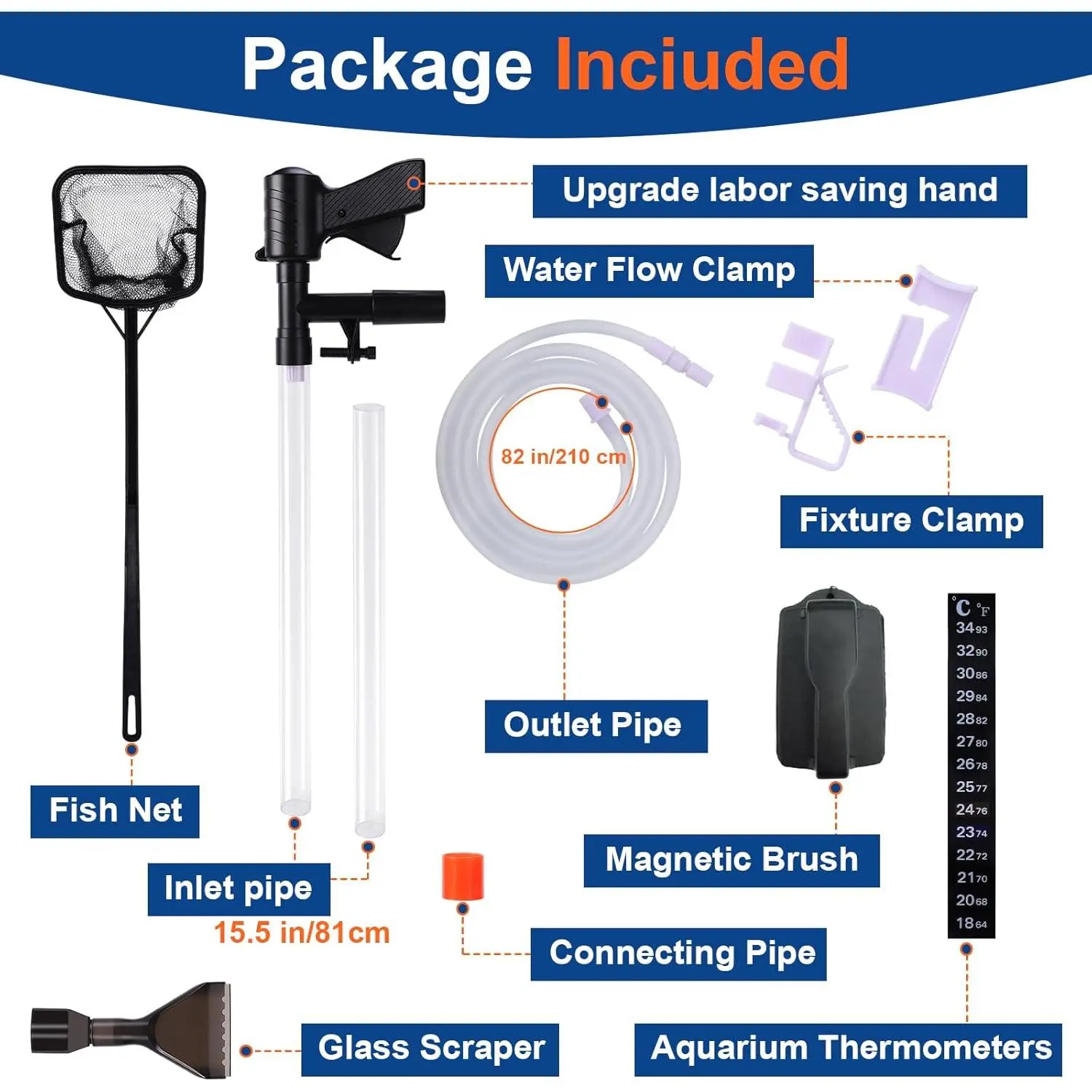 Fish Tank Cleaner Kit, Gravel Vacuum for Aquarium, Fish Tank Aquarium Vacuum Gravel Cleaner, Aquarium Siphon with Magnetic Fish Tank Glass Cleaner, Aquarium Cleaning Tools Water Changer