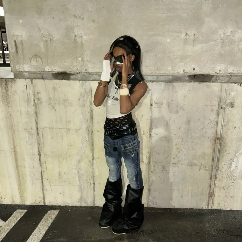 Reflective silver visor made for dirty bathroom lights and reckless confidence. Flash on, lips glossy, hair ruined. Proof you’re still standing. Proof you went too far.