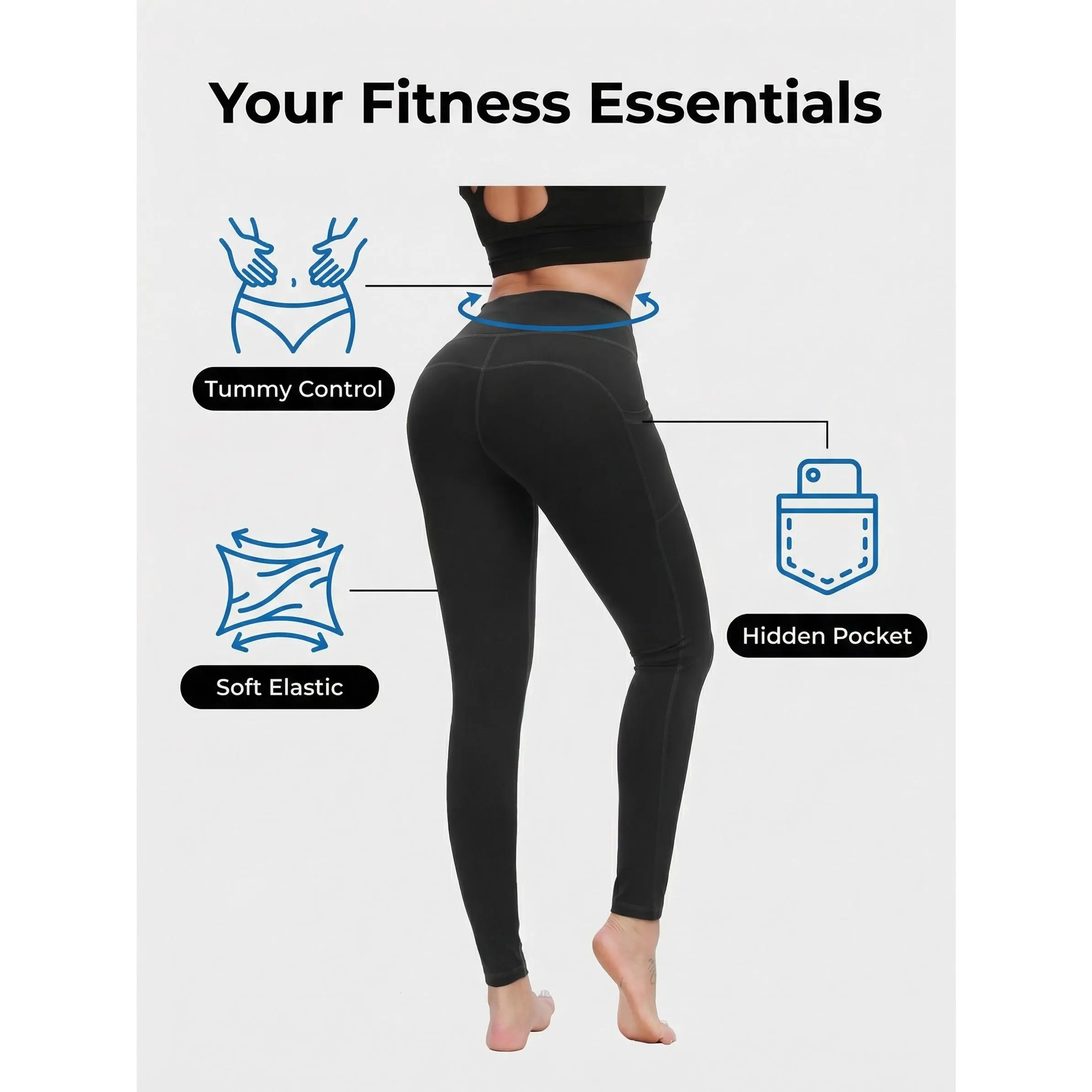 5. Women'S Yoga 9 Pants Padded Plain-Colored Base Pants with Pockets Cropped Yoga Leggings Butt Lifting Design High Rise Booty Yoga Pants Soft Stretch
