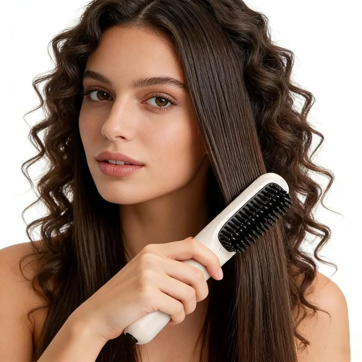 2026 Upgraded Wireless Straight Hair Brush, Go Brush - Pro for Short Hair,Supports 30 Second High Temperature, 3 Temperature Settings, 2500mAh USB-C Rechargeable, Avoiding Rough Styling (Pink)