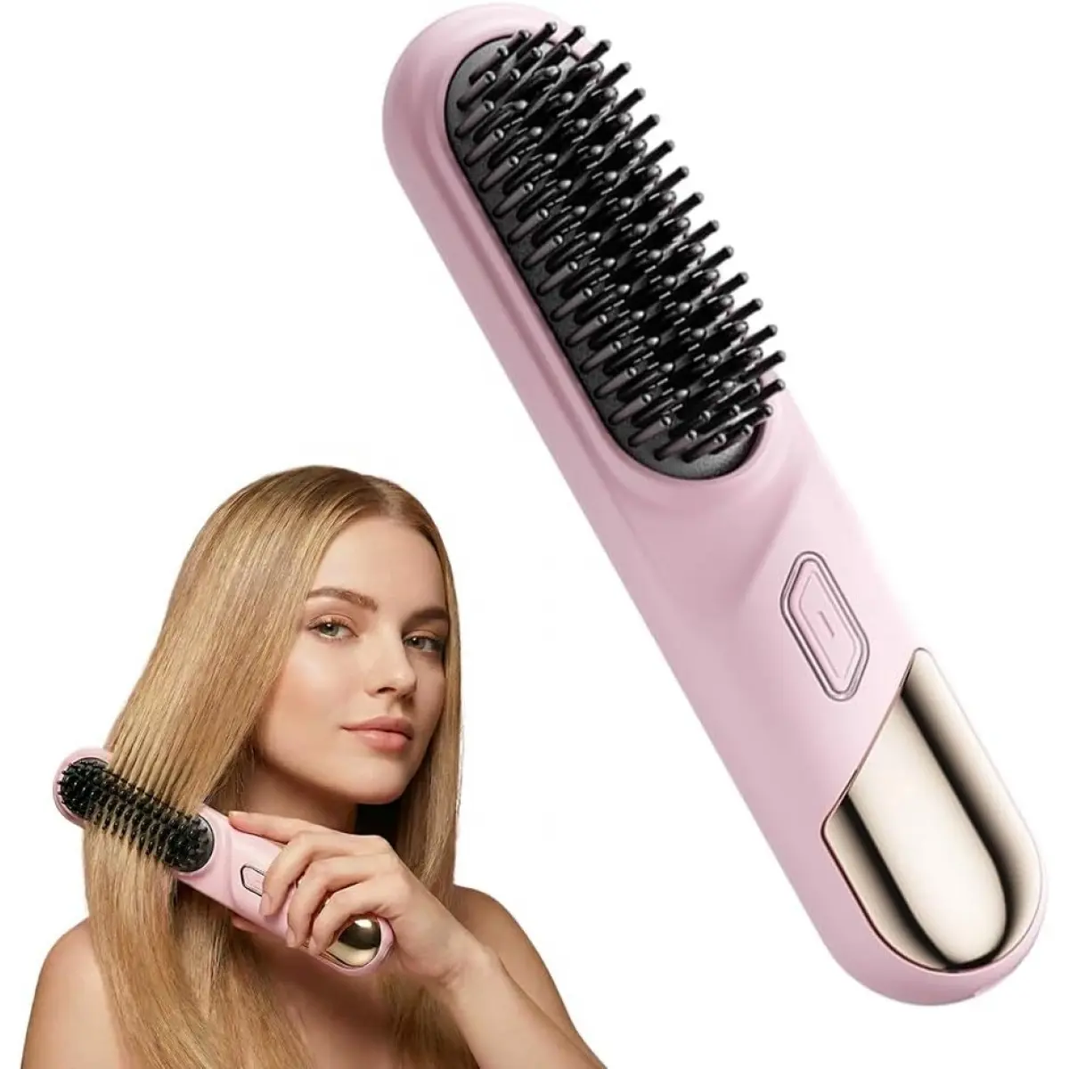 Go Brushs Pro for Short Hair,2026 New Portable Straightener Brushs for Travel with LCD Temperature Display, 30s Fast Heating Cordless Mini Hair Brushs (Pink)