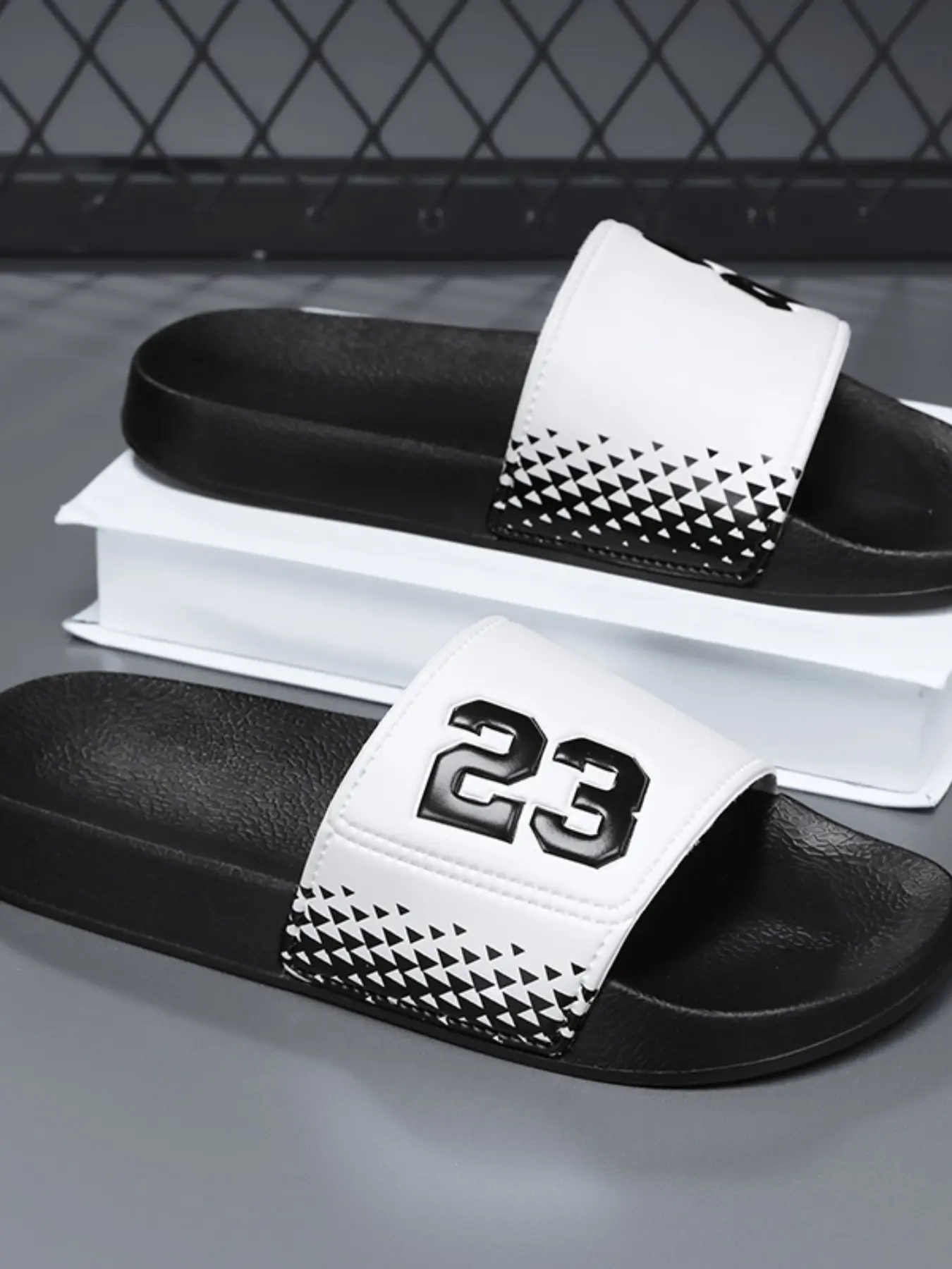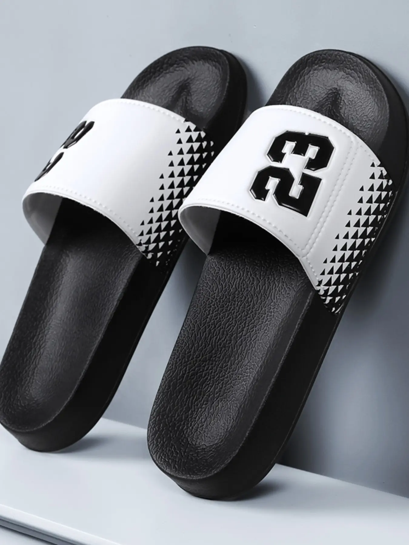 Trendy brand slippers for men to wear outside in summer, anti-slip and wear-resistant, outdoor casual beach cooling slippers, home bathroom bathing one-line slippers