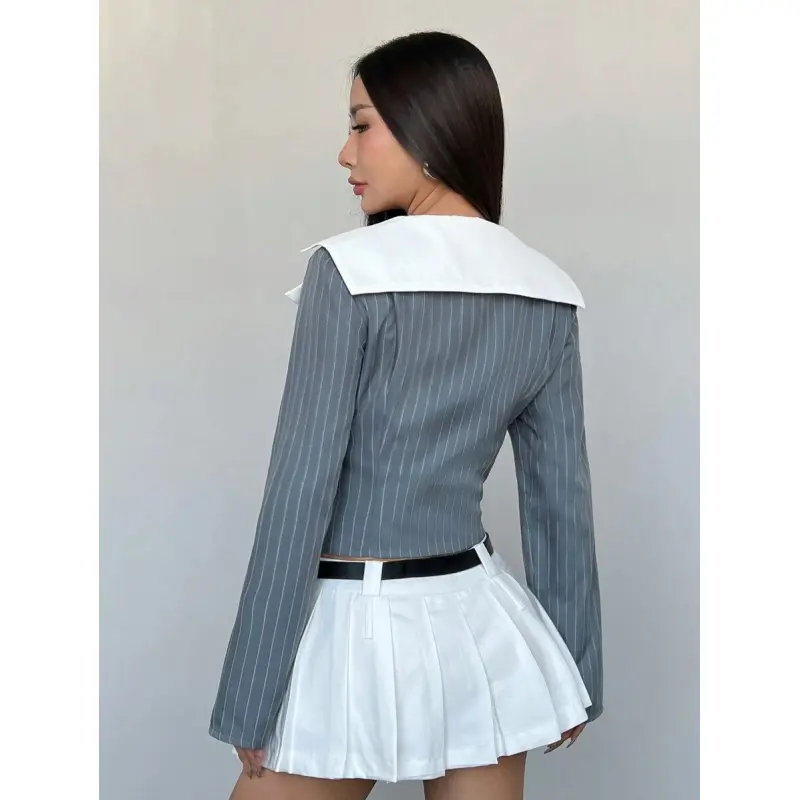 Women Striped Zip Up Blouse Sexy Deep V Office Siren Shirt Y2K Vintage Fitted Crop Top,chic Y2K aesthetic