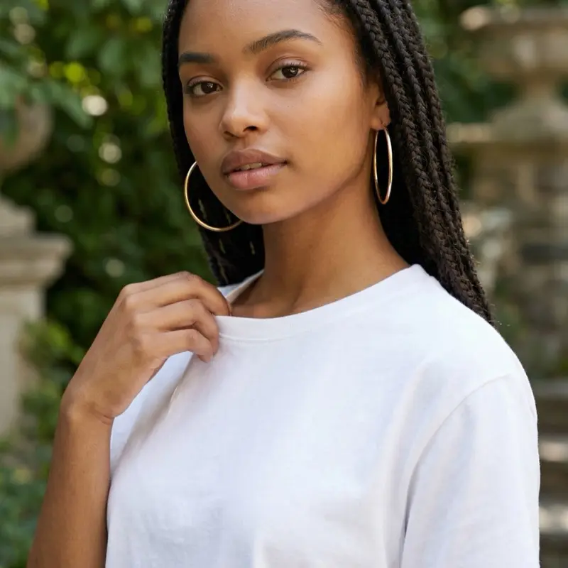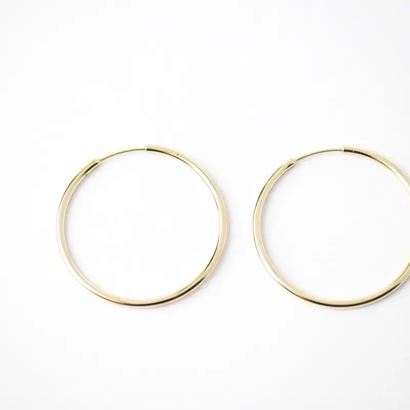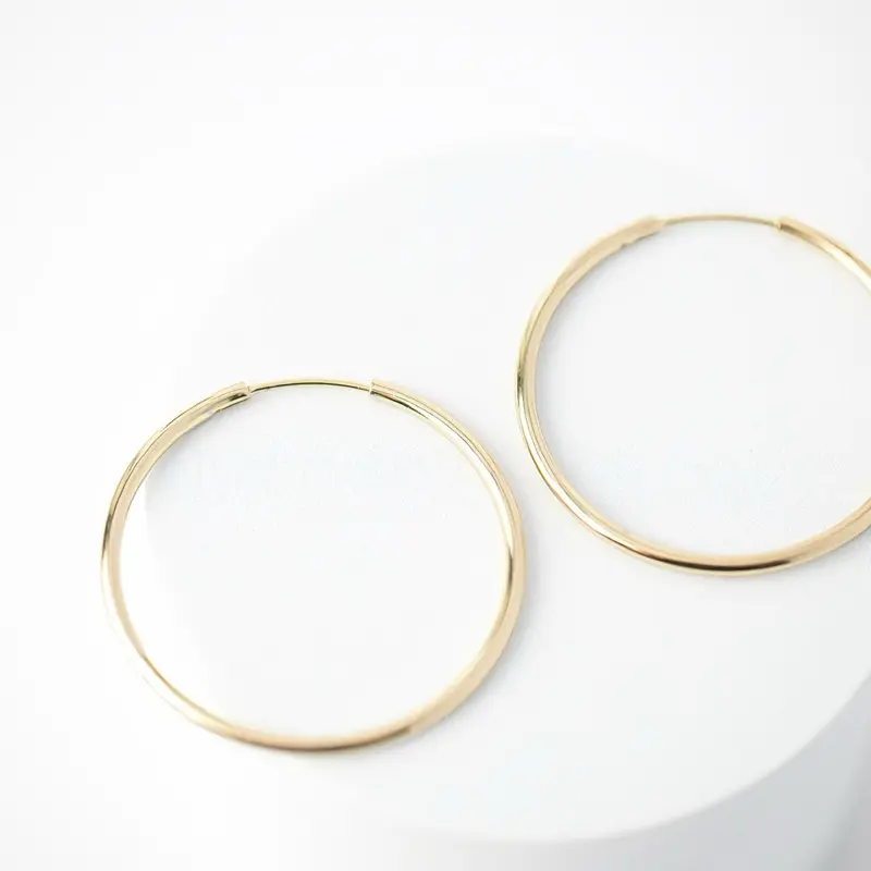 These thin gold hoops feature a sleek 2mm design that gives you a clean, classy look without the weight.