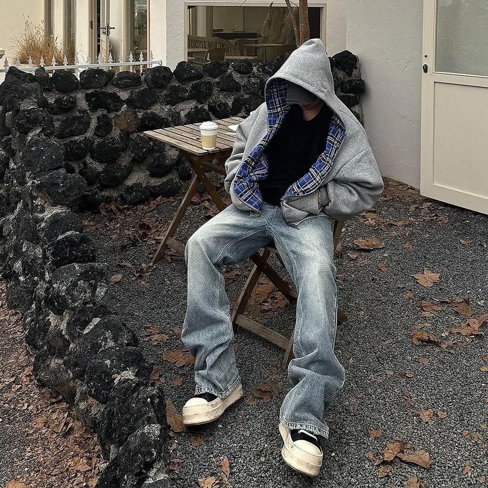 y2k Mens Oversized Reversible Hoodies Women Plaid Preppy Hoodie Streetwear Vintage Zipper Hooded Sweatshirt All Oversized Christmas Halloween Thanksgiving Day Menswear Tops Pullover