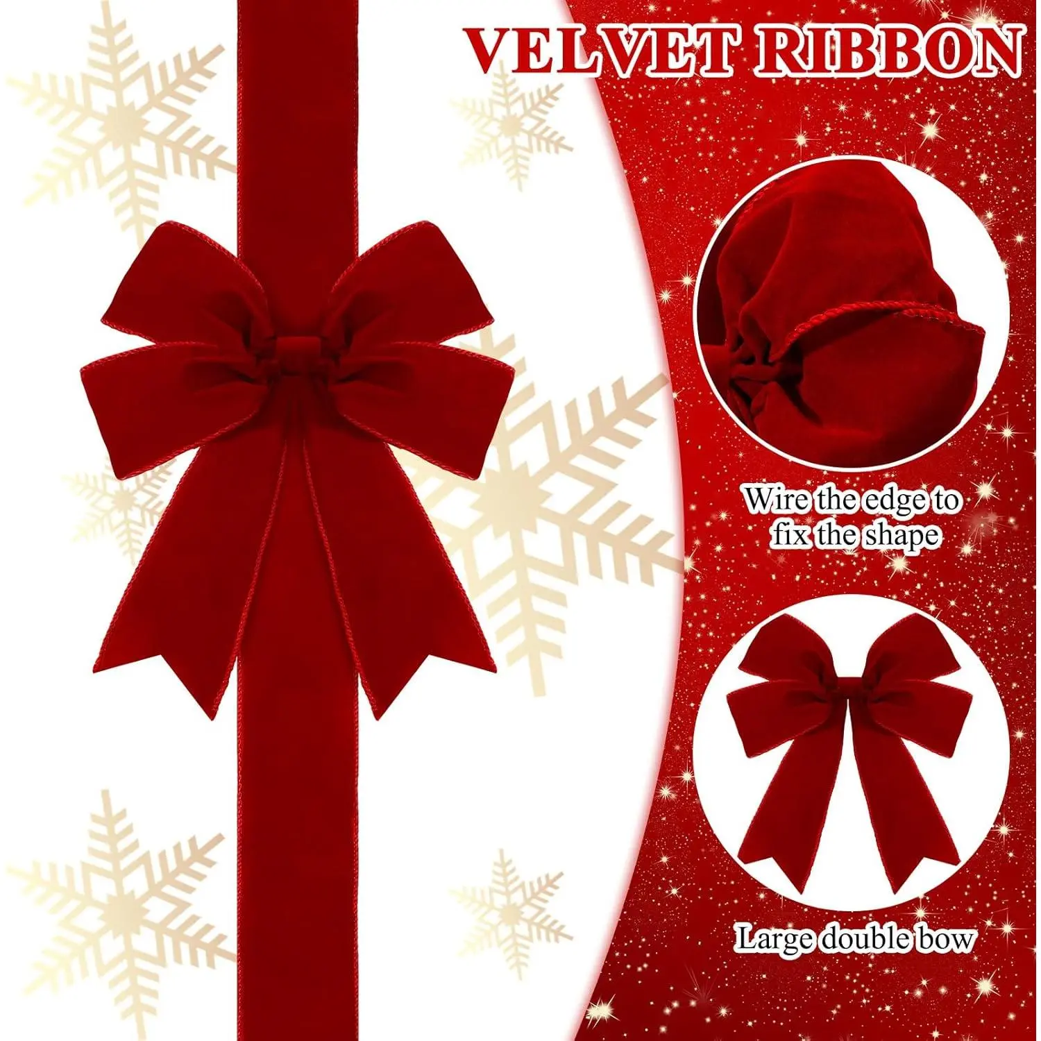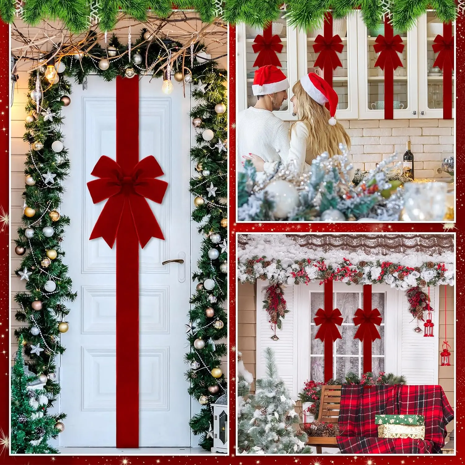 Christmas Velvet Cabinet Door Bows: you will receive 5 pieces of Christmas cabinet door bows, the size is about 9.8 x 7 inches / 25 x 18 cm, the length of the ribbon is about 3.28 feet / 1 meters, two lines with a total length of feet 6.56 feet / 2 meters, enough to meet your various decoration needs