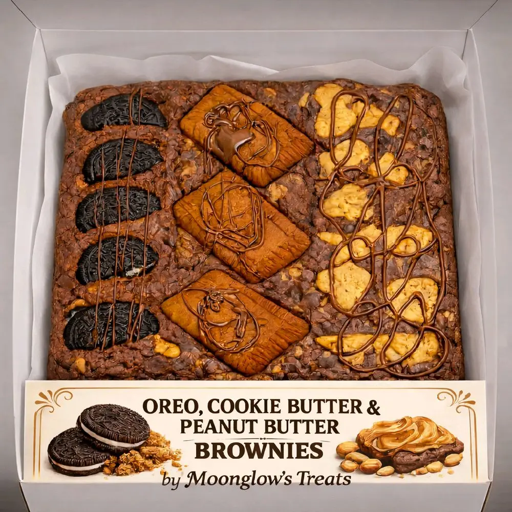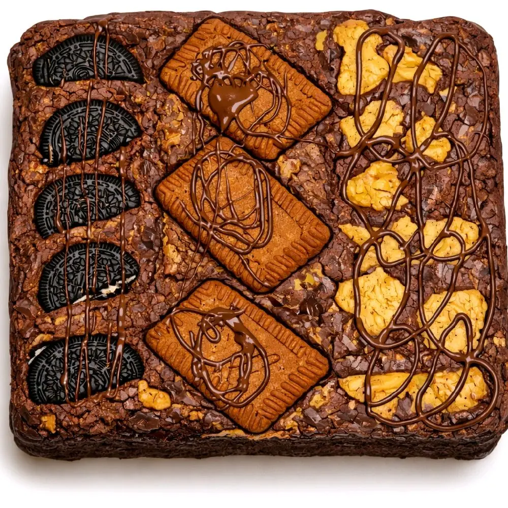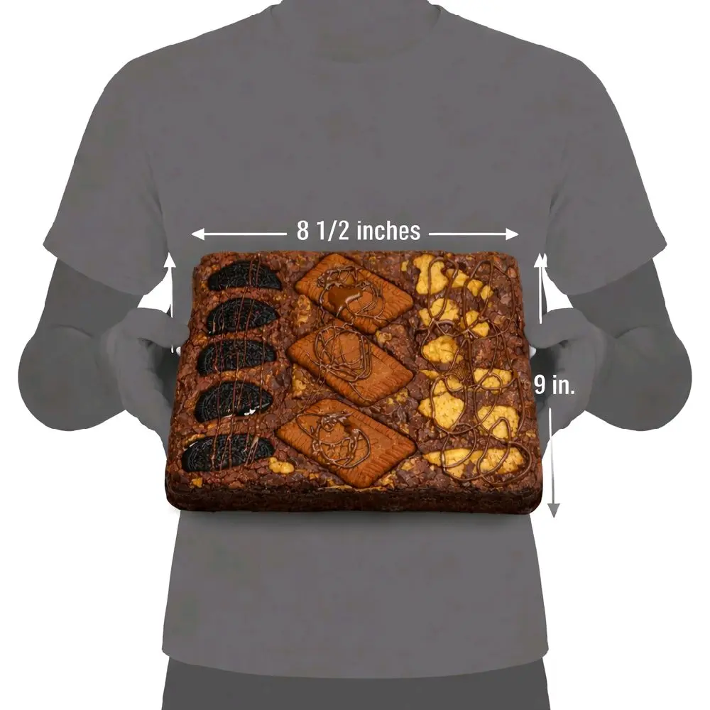| Ingredients | Sugar, enriched wheat flour (wheat flour, niacin, reduced iron, thiamine mononitrate, riboflavin, folic acid), butter, eggs, cocoa powder, chocolate chips (sugar, chocolate liquor, cocoa butter, soy lecithin, vanilla), peanut butter (roasted peanuts, sugar, salt, palm oil), cookie butter (crushed cookies [wheat flour, sugar, vegetable oils, spices], sugar, vegetable oils), Oreo cookies (unbleached enriched flour, sugar, palm and/or canola oil, cocoa, high fructose corn syrup, leavening, salt, soy lecithin, chocolate), vanilla extract, salt, baking powder.