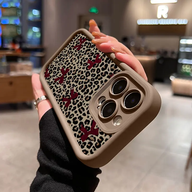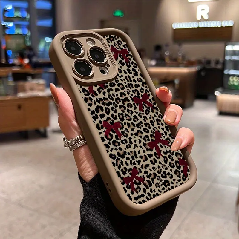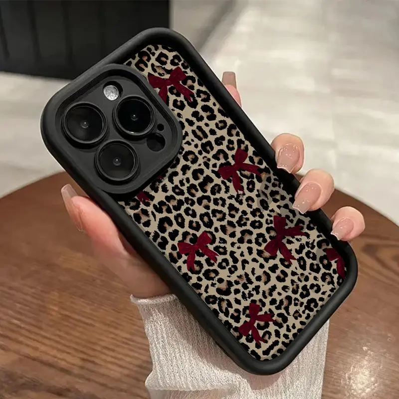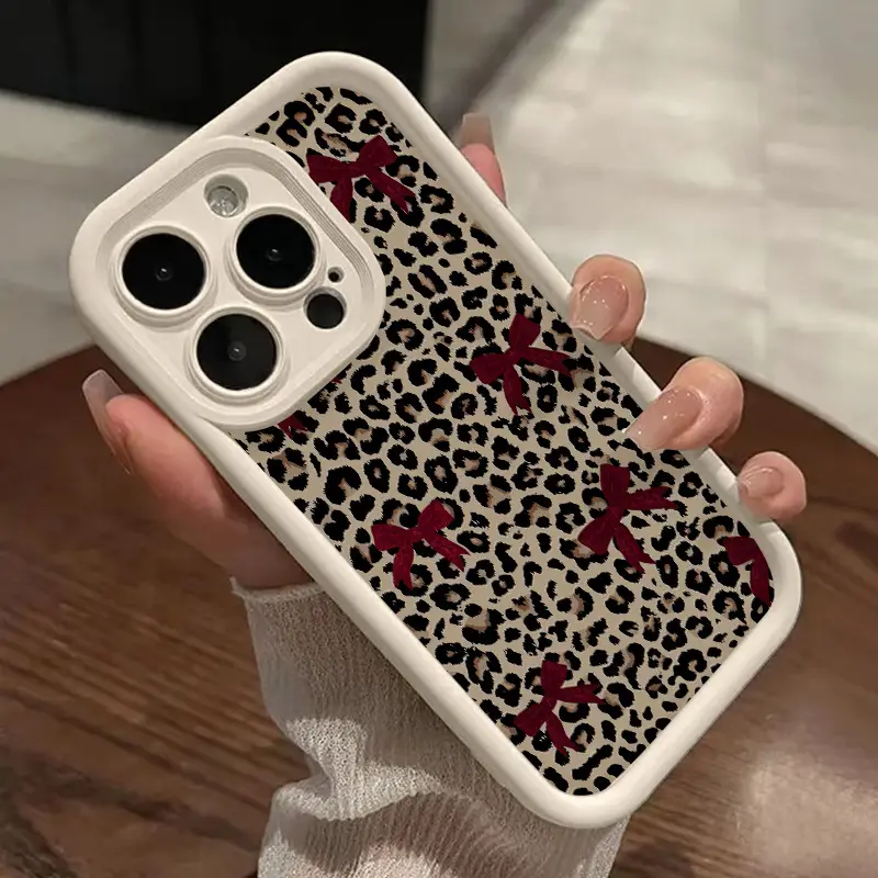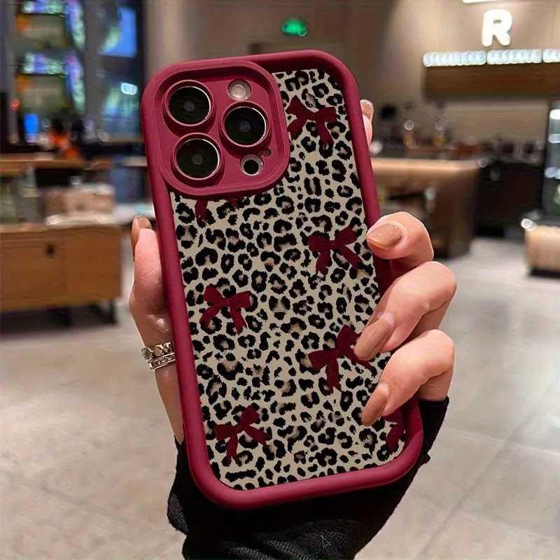 [Red Bow Phone Case] Leopard Print Red Bow Anti-Drop Soft Case, Minimalist High-End Air Cushion Suitable for iPhone 17 E Air Pro ProMax iPhone16 15 14 Plus 13 12 Mini 11 X XS XR, Couple'S New Style, Anti-Drop, Matte, Unisex, Full Coverage, Soft Case