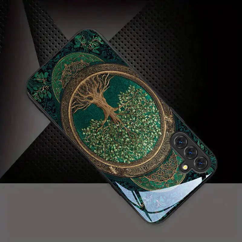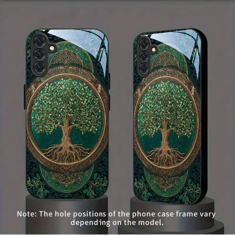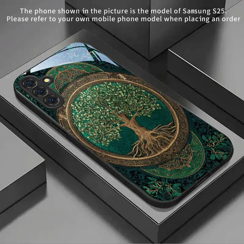 Phone Case: Golden Frame Tree of Life Pattern New Black Tempered Glass Phone Case for Samsung Galaxy S26 S25 S24 S23 S22Pro S21 S20 Fe Plus Ultra Pro A56 A55 A54 A53 A52 A51 A36 A35 A34 A32 A26 A25 A24 A23 A16 A15 A14 A06 A05 A03s