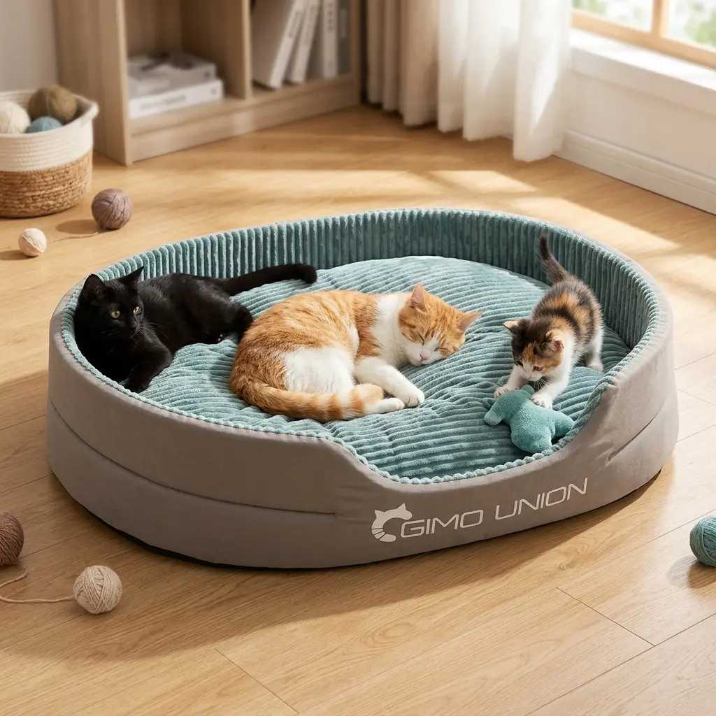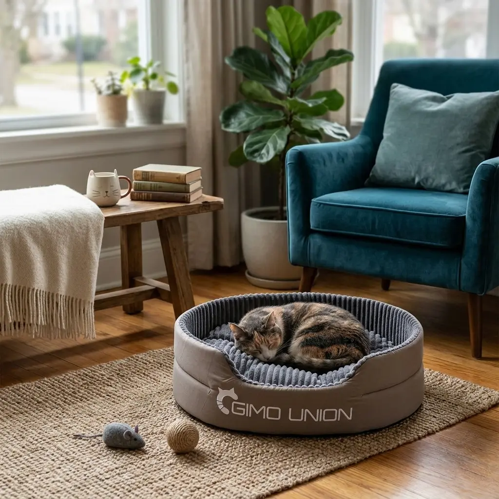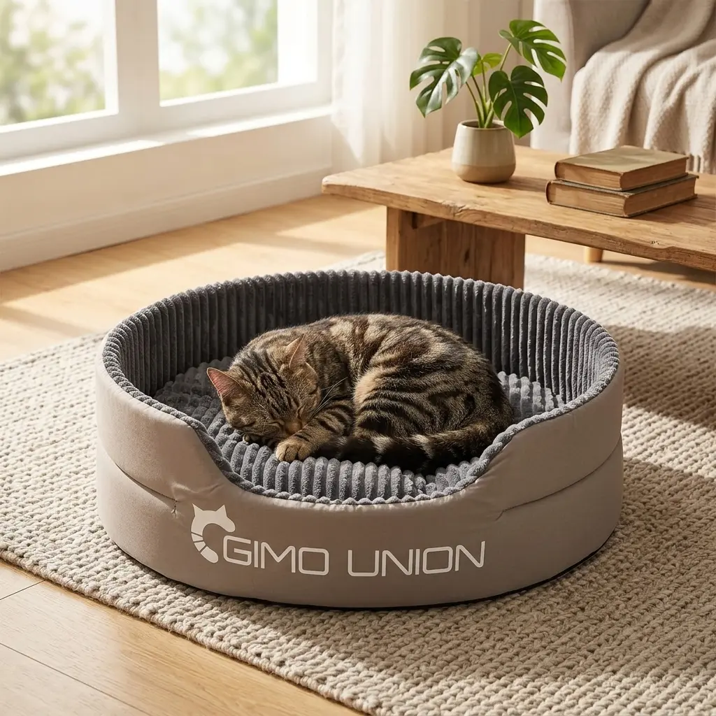 Indoor All-Size Cat Bed Sofa, Gray Polyester Thick Foam, Removable Washable Cover No Assembly Fluffy Round Anti-Slip Pet Natural Wood Retro Tree Tower Luxury Dog Double-Sided sized human