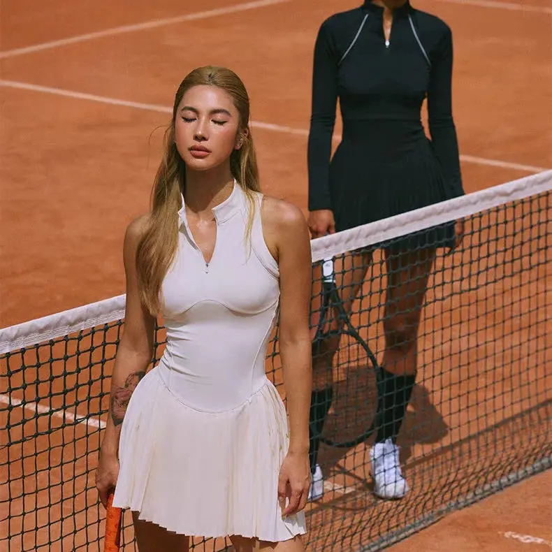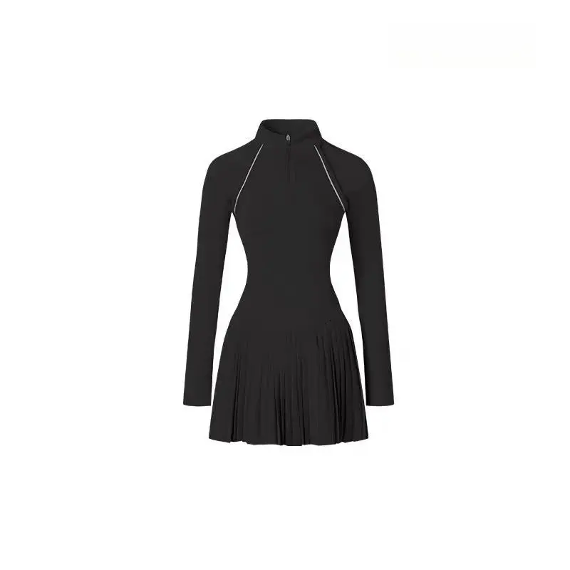 Designed for the court and beyond, this long sleeve tennis dress combines athletic performance with a sleek, feminine silhouette. The zipper stand collar adds a modern edge while keeping you covered during high-intensity play.