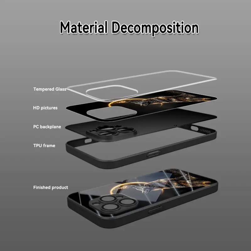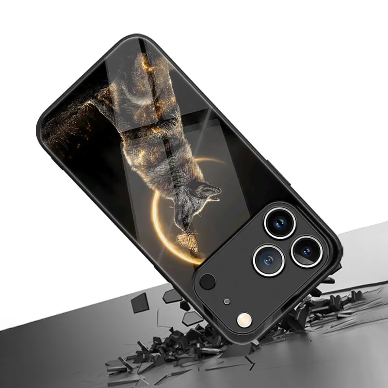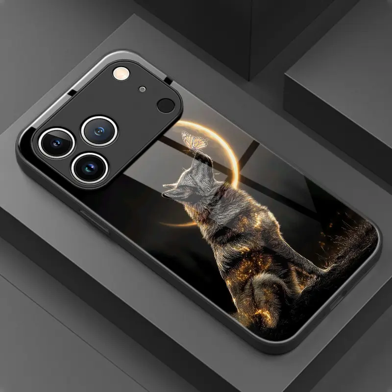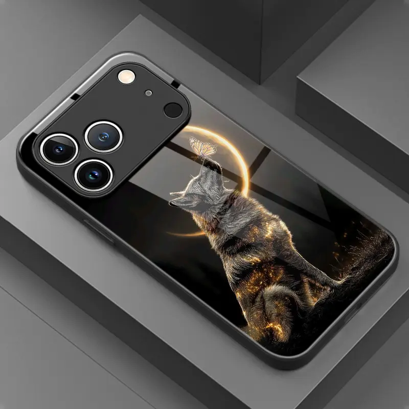 Phone Case: Artistic Fashion Moon Black Wolf Pattern Glass Phone Case, Suitable for iphone17 17Air 16 Pro 15 Promax 14 Plus 13 12 11, Full Coverage, High-Definition Tempered Glass, Stylish Protective Cover, Device Protective