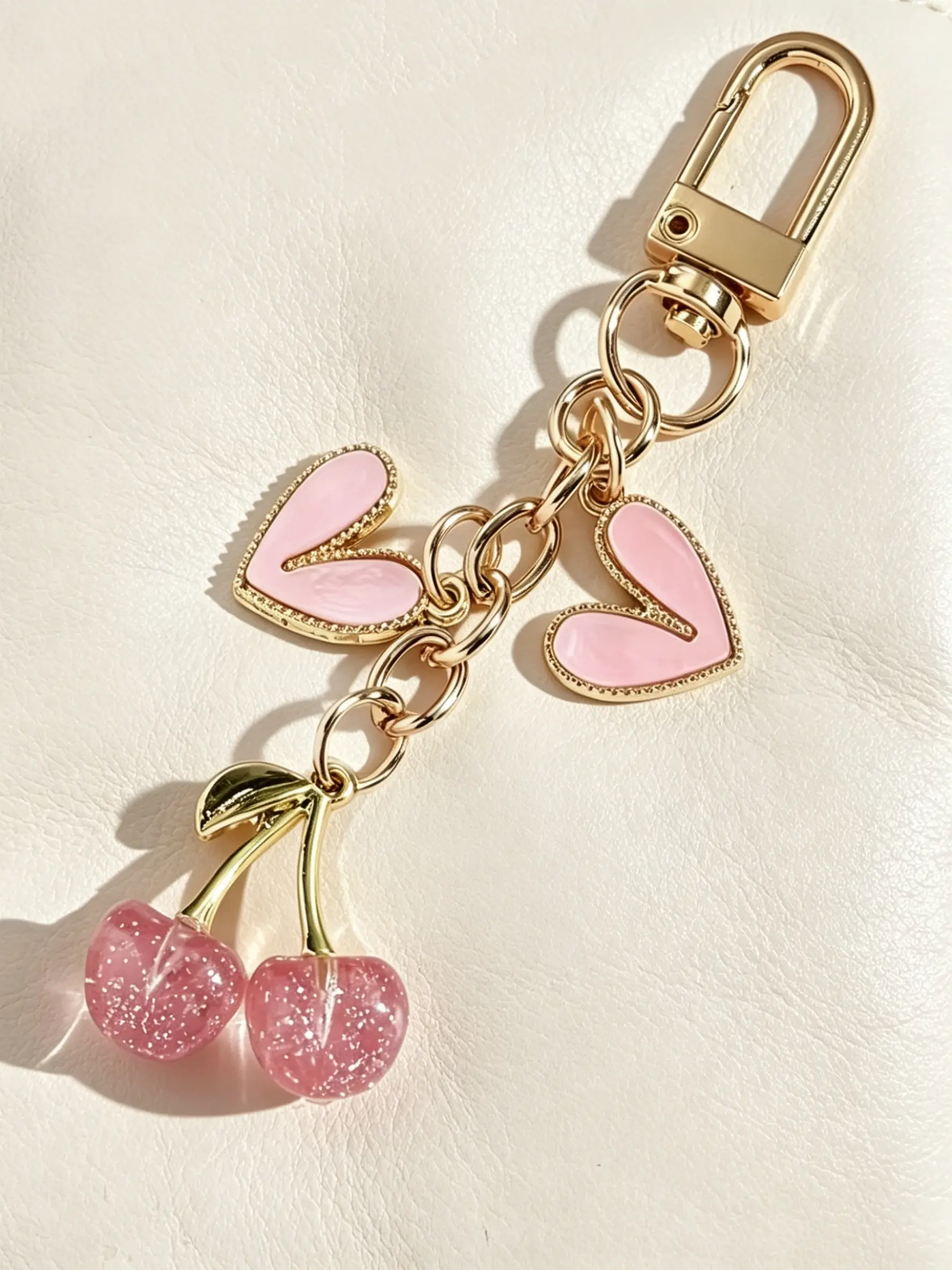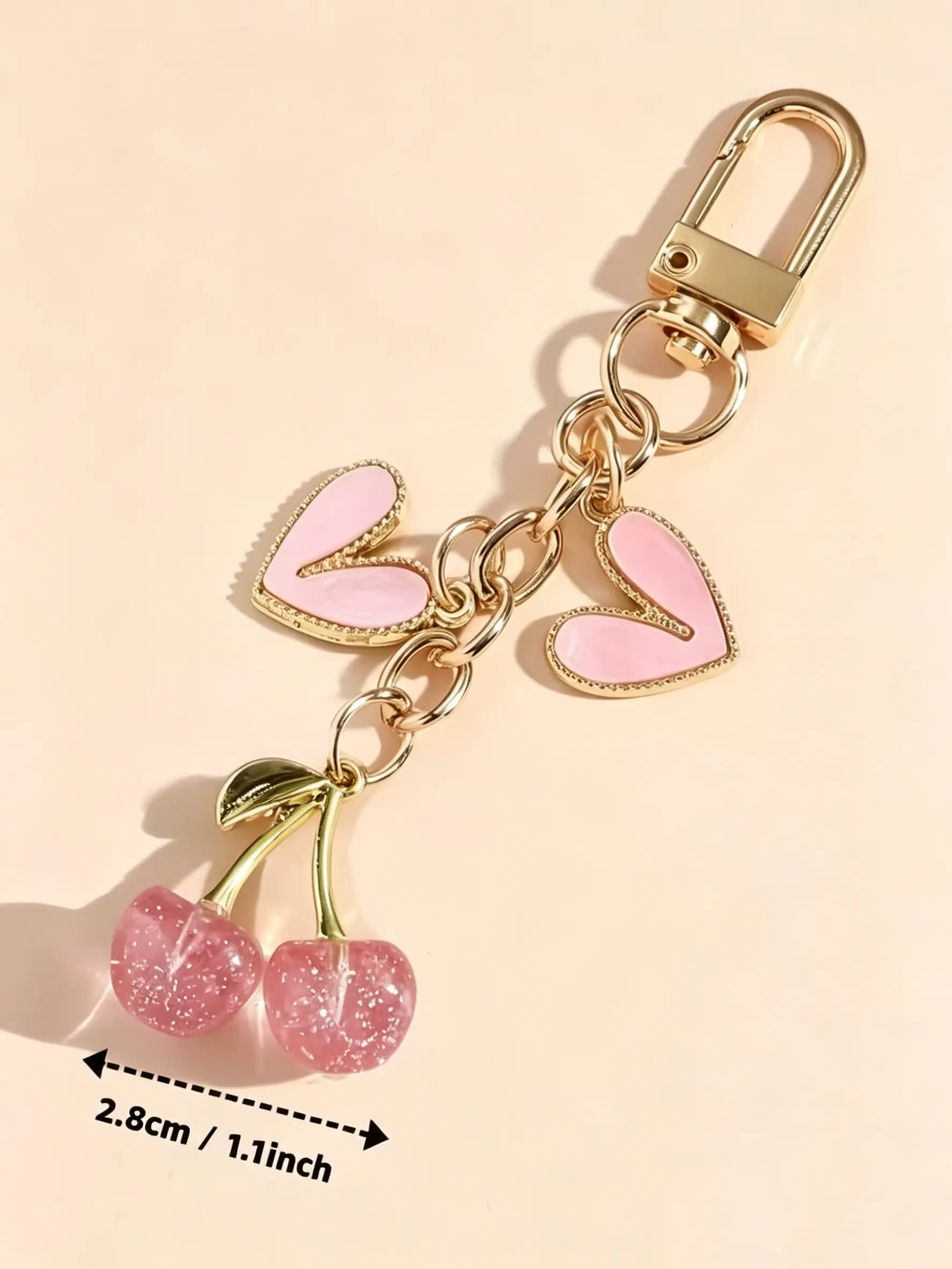 Elegant Cherry Heart Keychain for Women, Cute Glossy Cherry Key Ring, Fashion Bag Charm, Casual Style, No Choking Risk